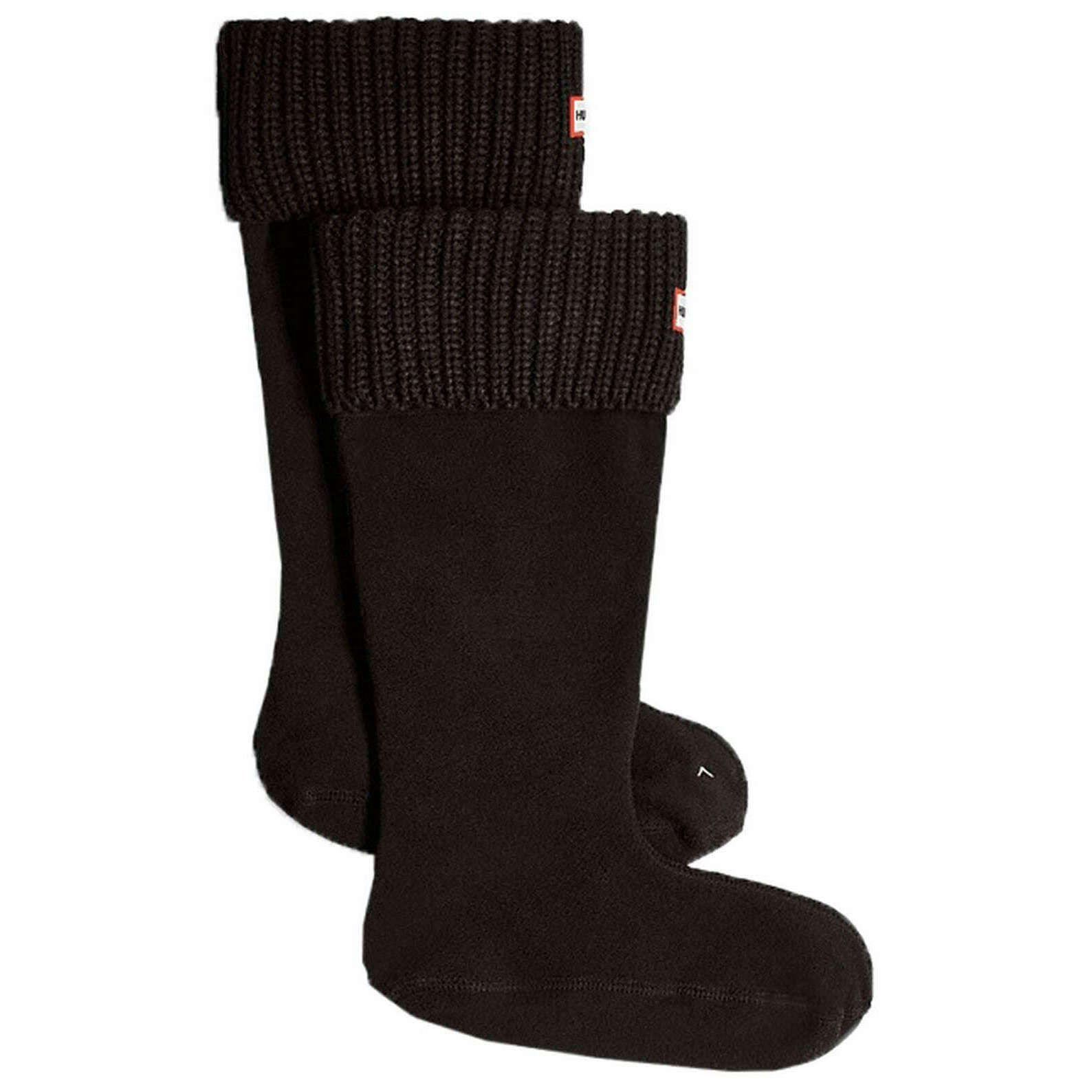Introducing these unisex recycled half cardigan tall boot socks by Hunter, they are manufactured from 100% post-consumer recycled polyester fleece in a black colour. Also the black socks are designed in a plain pattern, All the socks come complete with hunter packaging. The Hunter Recycled Half Cardigan Tall Boot Socks - Black have been crafted to fit tall welly boots with a ribbed cardigan designed fold down cuff to ensure an enhanced fit keeping them from falling down, whilst adding style. Designed with left and right foot shaping with markers on the bottom allow for an exact fit and optimal comfort when on your muddy travels. The recycled fleece material being completely vegan ensures an environmentally friendly wear whilst keeping your warm and snug. Finished with Hunter branding on the cuff for a complete look.