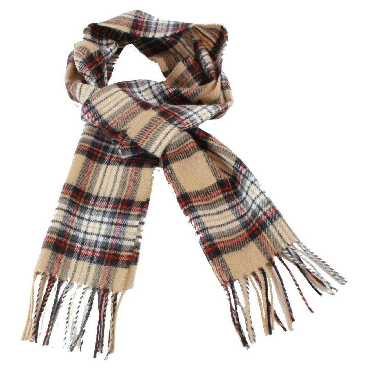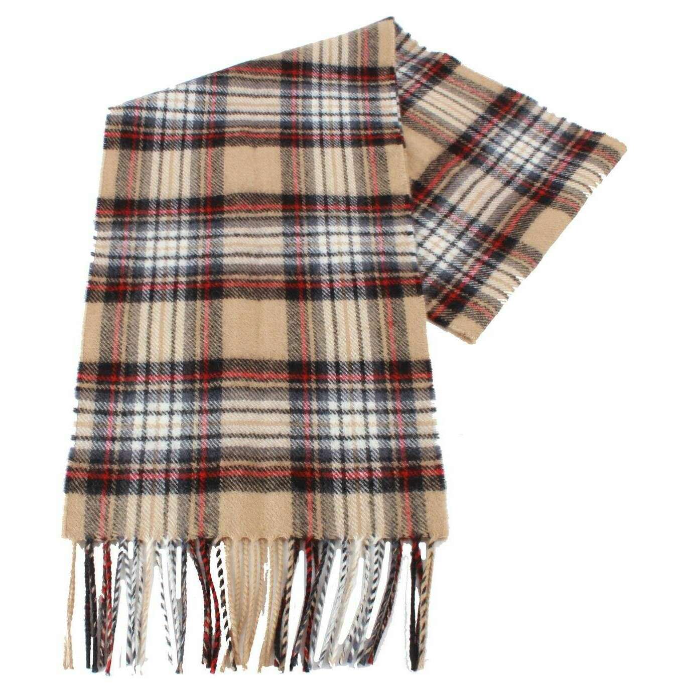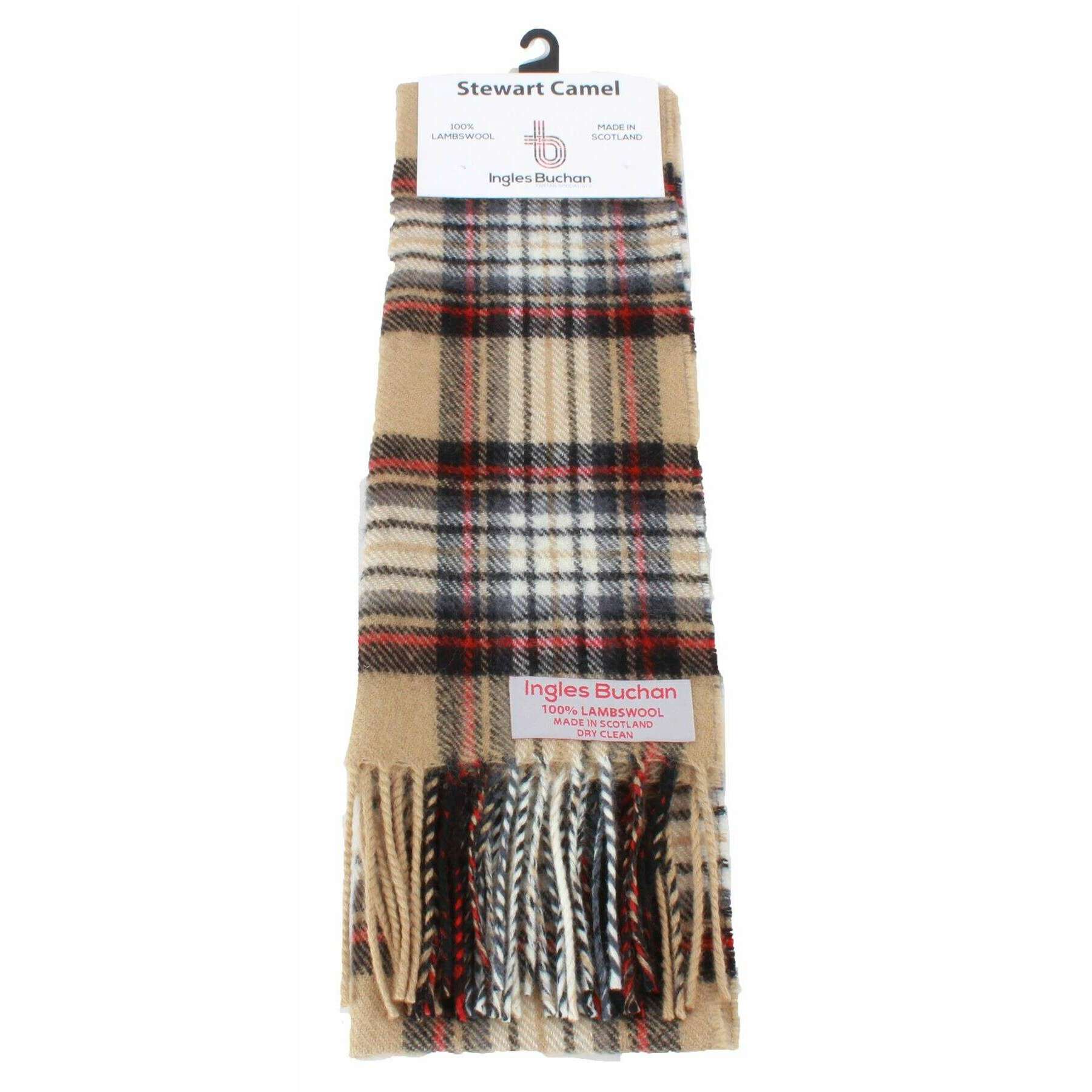 Ingles Buchan Stewart Camel Modern Lambswool Scarf - Beige/Black/Red
