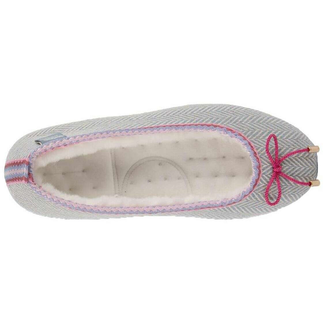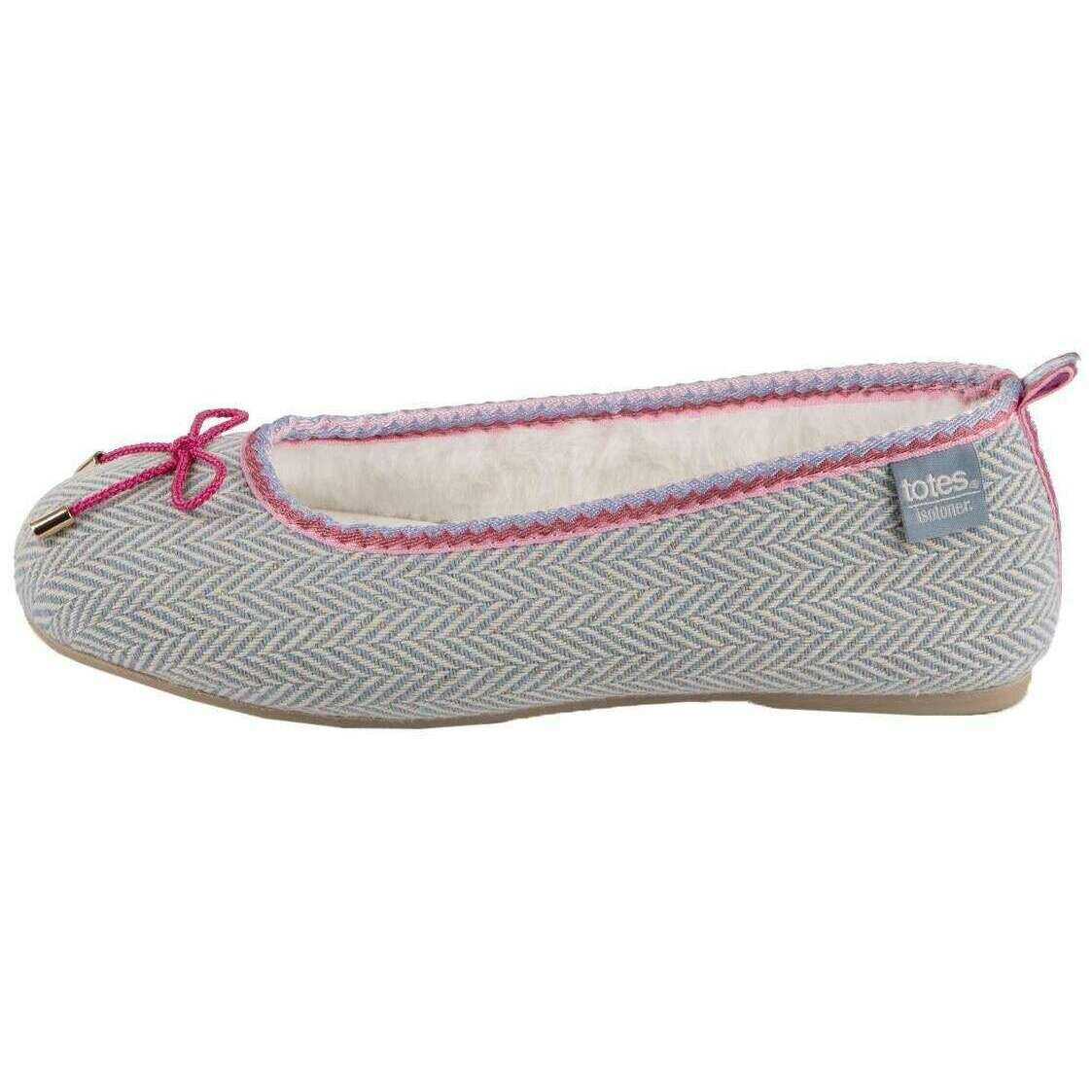 These women's herringbone ballet slippers by the brand Isotoner are made from 100% polyester and are showcased in grey. Also the grey slippers are designed in a herringbone pattern, It is recommended to do not wash and wipe clean with a damp cloth to keep these slippers in good condition. All the slippers come complete with isotoner packaging. The Isotoner Herringbone Ballet Slippers - Grey are a must have in any lady s collection. Perfect for walking around the house with style and added support, warmth and comfort from the pillow step cushioned technology for underfoot cushioning, added memory foam and a durable sole. The open top design keeps your feet from overheating leaving a breathable feel. Finished with a girly pink bow, trim detailing and a herringbone design to complete this gorgeous pair.