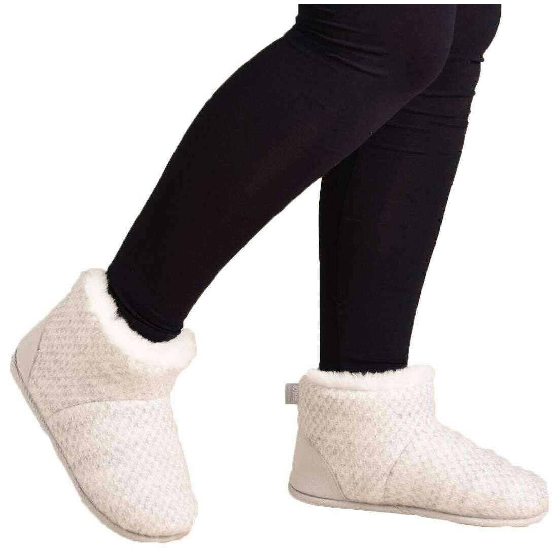 These women's sparkle knit boot slippers by the brand Isotoner are made from 45% acrylic, 40% polyester and 15% wool and are showcased in grey. Also the light grey slippers are designed in a plain pattern, It is recommended to hand wash only to keep these slippers in good condition. All the slippers come complete with isotoner packaging. The Isotoner Sparkle Knit Boot Slippers - Light Grey will pair perfectly with any of your wintery PJs for a complete cosy look to relax after a long cold day. The boot length not only keeps your feet cosy but also your ankles with the soft and warm lining, whilst the added memory foam and lightweight elevated heel sole ensures optimal comfort and support whilst walking around the house. Completing this look is the subtle sparkle detail.