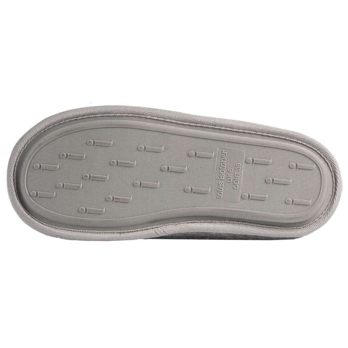 These women's sparkle knit swept back mule slippers by the brand Isotoner are made from 45% acrylic, 40% polyester and 15% wool and are showcased in grey. Also the light grey slippers are designed in a plain pattern, It is recommended to hand wash only to keep these slippers in good condition. All the slippers come complete with isotoner packaging. The Isotoner Sparkle Knit Swept Back Mule Slippers - Light Grey offer exceptional comfort, support and warmth! Featuring pillow step cushioned technology with a heel layer will feel like you re walking on a cloud with the support for the heels, arches and toes. This mule style will keep your feet nice and toasty with the soft fluffy materials and coverage of the foot, whilst also being breathable with an open back.