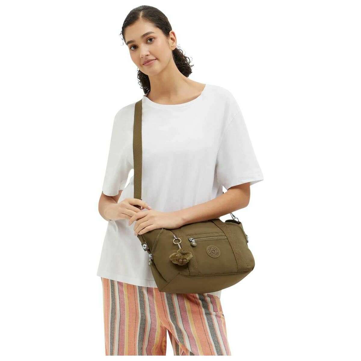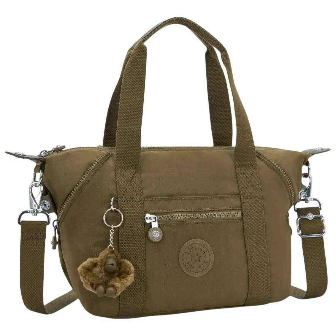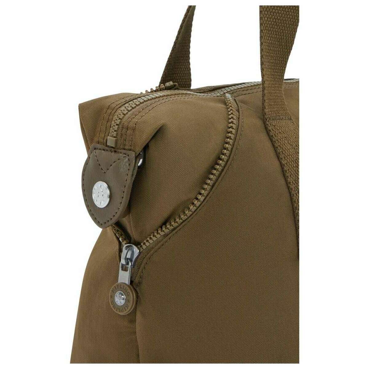 Manufactured from 60% polyamide and 40% recycled polyamide is this smooth khaki women's art mini tote bag by the designer Kipling. It measures 20cm(height) x 39cm(width) x 18.5cm(depth). All the bags come complete with kipling packaging. The Kipling Art Mini Tote Bag - Smooth Khaki is a versatile everyday companion designed to adapt to the wearer s needs. With adjustable corners that change the size and silhouette in an instant, it offers effortless flexibility whether used for daily errands, work, or weekend outings. Despite its compact look, this lightweight tote is surprisingly roomy, featuring a zipped main compartment and thoughtfully arranged pockets that keep essentials organised on the go. The interior includes a zipped pocket along with dedicated phone, pen, and wallet compartments for easy access to smaller items. On the outside, one zipped and one open front pocket add convenient storage for items needed quickly. The bag can be carried by its dual top handles for a classic look, or the wearer can unzip the corners, attach the removable and adjustable strap, and switch to a hands?free shoulder or crossbody style. Finished with a water?repellent coating, Kipling s signature monkey, and the iconic round Kipling logo, the Art Mini offers a winning combination of practicality, durability, and playful charm.