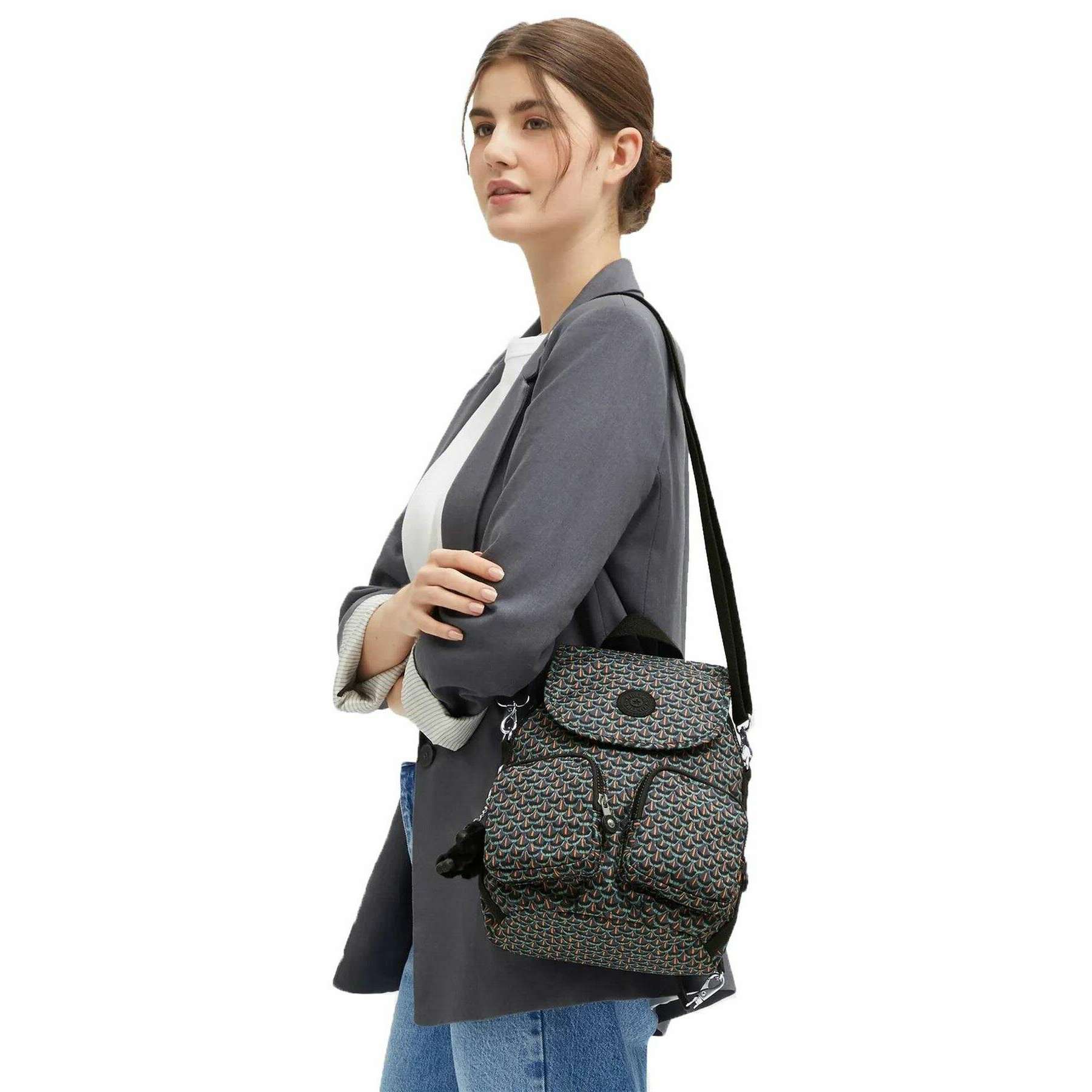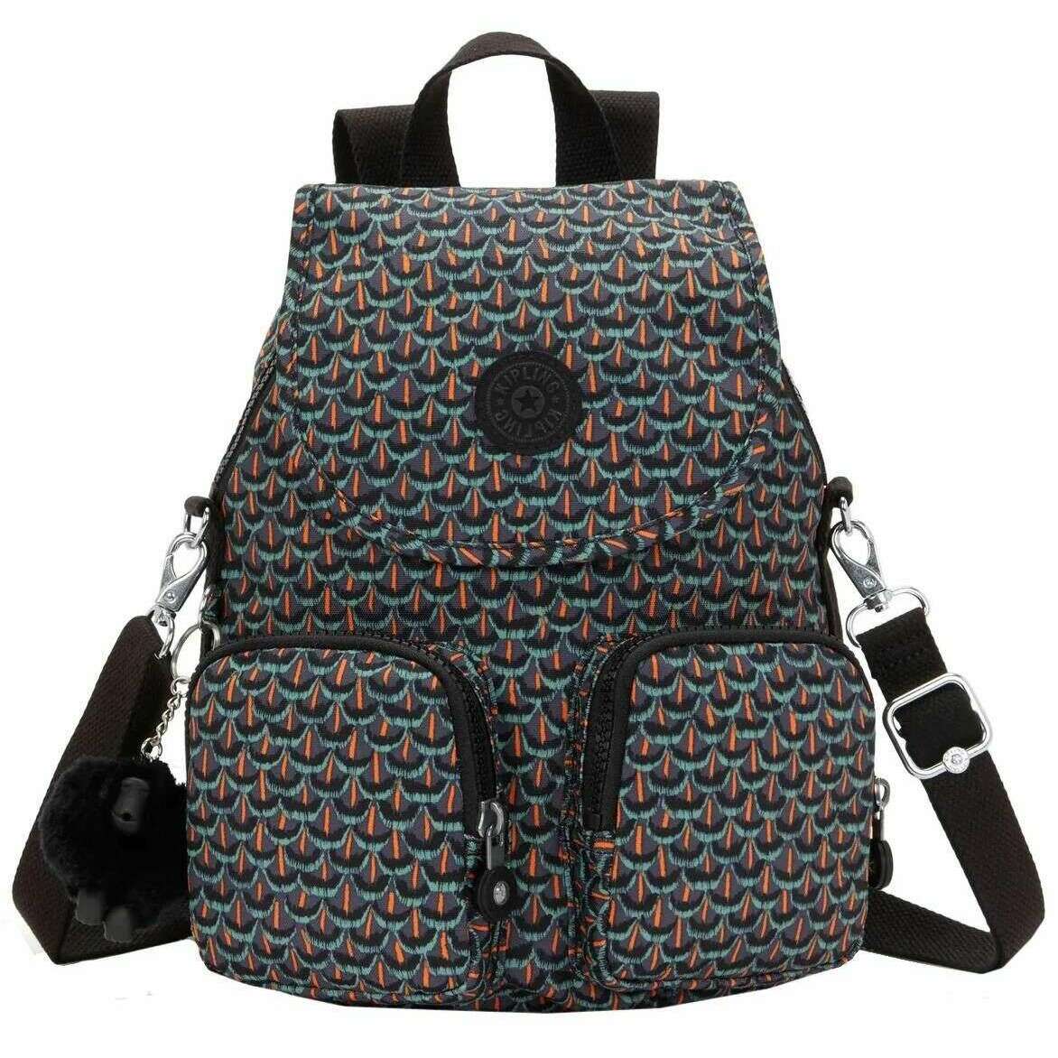 Designer Kipling has brought you this women's 100% recycled polyester bag using geo feather black tones. It measures 31cm(height) x 22cm(width) x 14cm(depth). All the bags come complete with kipling packaging. The Kipling Firefly Up Backpack - Geo Feather Black is designed to help you stay organized. With a main compartment with zipped pockets, this bag also features two zipped front pockets and two rear zipped pockets for complete storage and more security. Built with a top carry handle and adjustable backpack straps you have varying carrying options. Travel or commute, this bag is the perfect choice!
