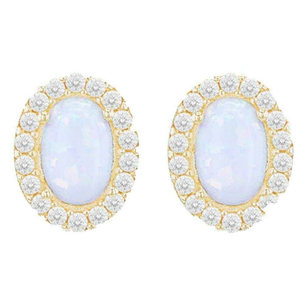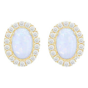 KJ Beckett Oval Opal Stud Earring - Yellow Gold/White