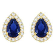 KJ Beckett Pear Shaped Halo Stud Earring - Yellow Gold/Navy