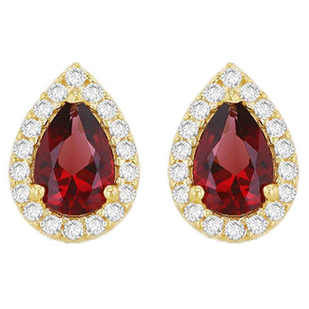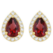 KJ Beckett Pear Shaped Halo Stud Earring - Yellow Gold/Red