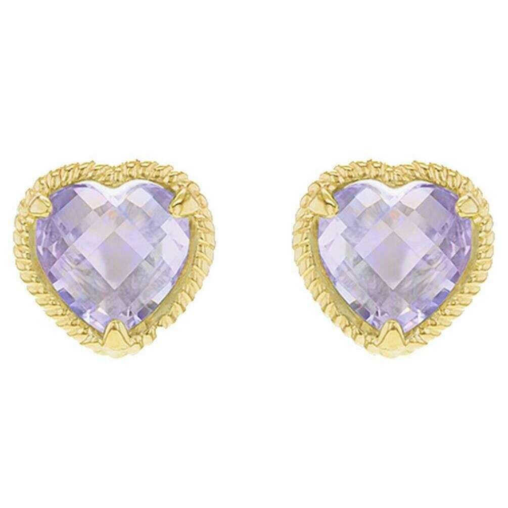 KJ Beckett Twisted Heart Amethyst Stud Earring - Yellow Gold/Purple