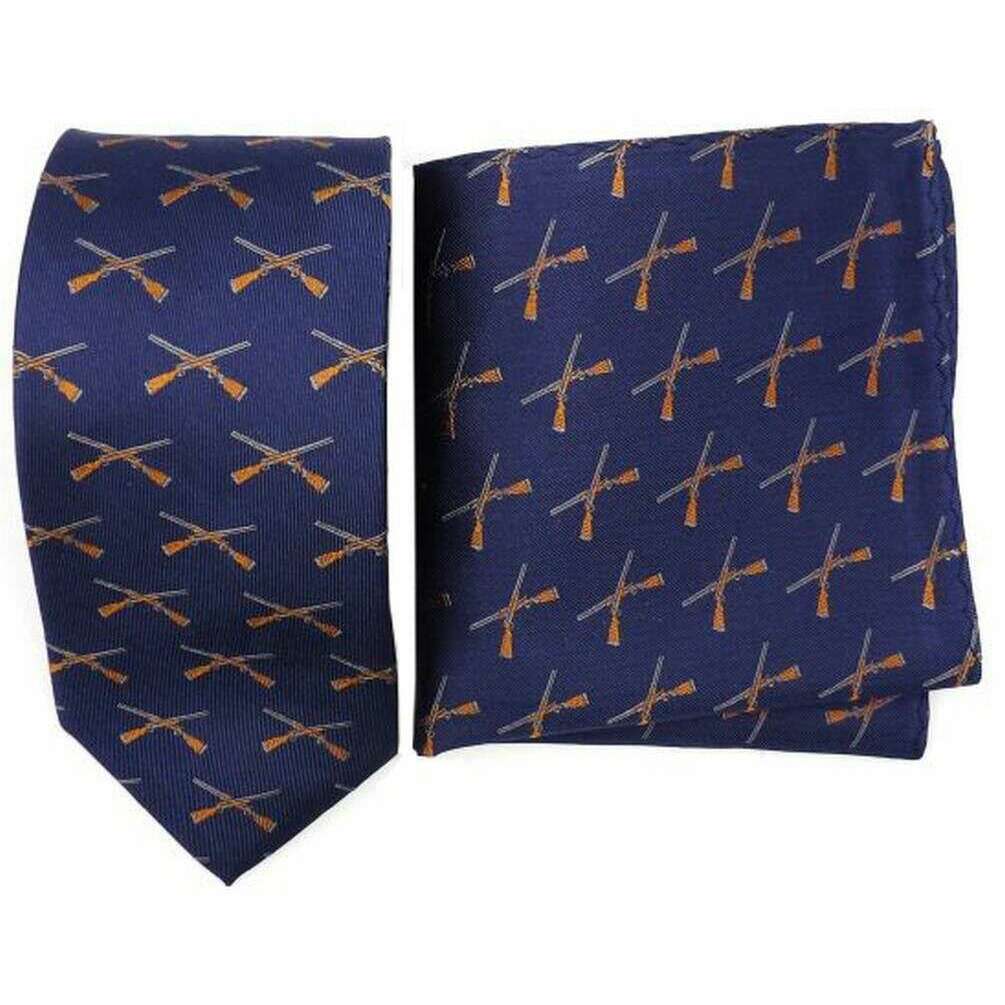 This men's gun woven silk tie and pocket square set by the brand Knightsbridge Neckwear is made from 100% silk and is showcased in navy. Also the navy tie and pocket square set is designed in a unique pattern, It is recommended to dry clean only to keep this tie and pocket square set in good condition. All the tie and pocket square sets come complete with knightsbridge neckwear presentation box The Knightsbridge Neckwear Gun Woven Silk Tie and Pocket Square Set - Navy a unique and funky design that will be certain to impress any stylish gentleman. This tie and pocket square is ideal to wear for any occasion, adding a dash of colour to your attire at the same time.