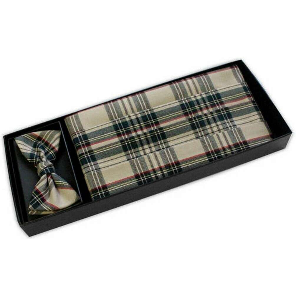 Knightsbridge Neckwear Tartan Cummerbund and Bow Tie Set - Beige