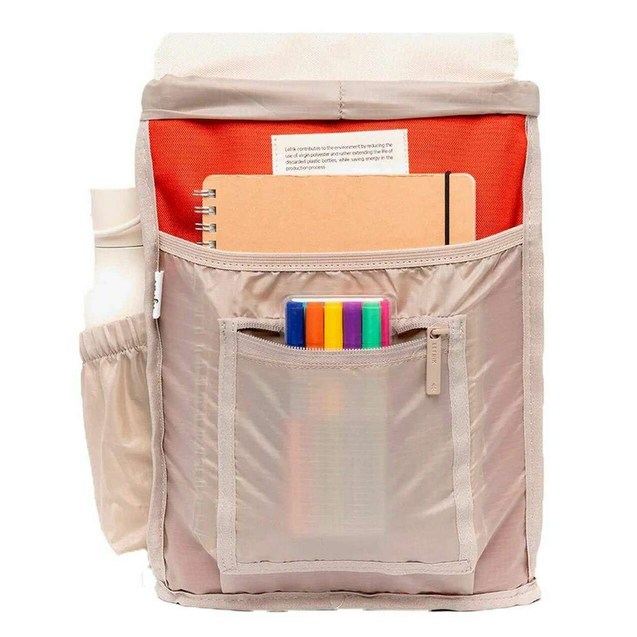 This well made unisex kaut mini backpack from Lefrik comes in a cherry block red colour and is manufactured from 100% vegan oxford rpet fabric. It measures 30cm(height) x 22cm(width) x 13cm(depth). All the bags come complete with lefrik packaging. The Lefrik Kaut Mini Backpack - Cherry Block Red is extremely practical and comfortable. This mini version of the iconic Kaut model features a large main compartment and a separate pocket for notebooks or small electronic devices. Perfect for school, work or play, this backpack is lightweight and water resistant. The quick access pocket on the flap and security pocket on the back allow you to store small items comfortably. With just the right amount of space, this vegan and sustainable backpack is designed for convenience.