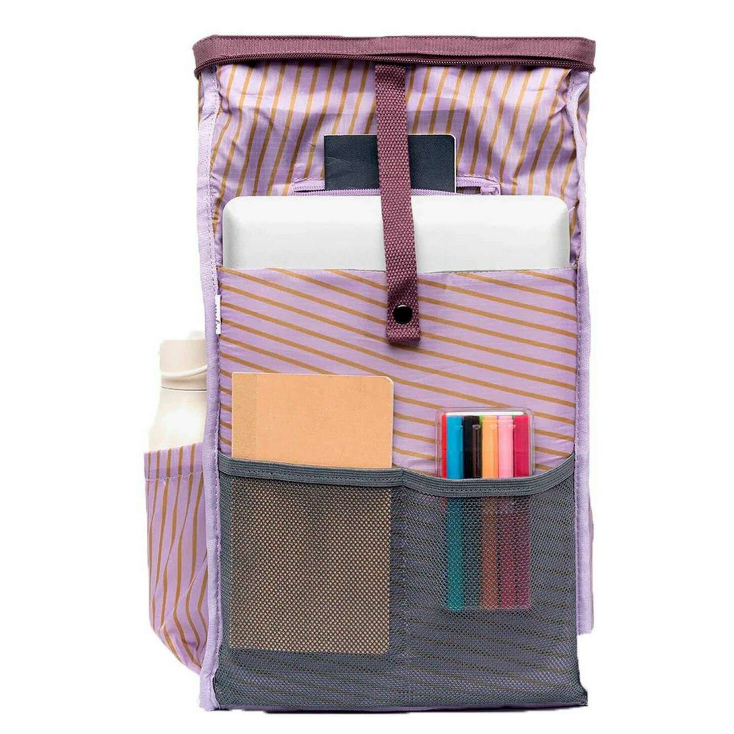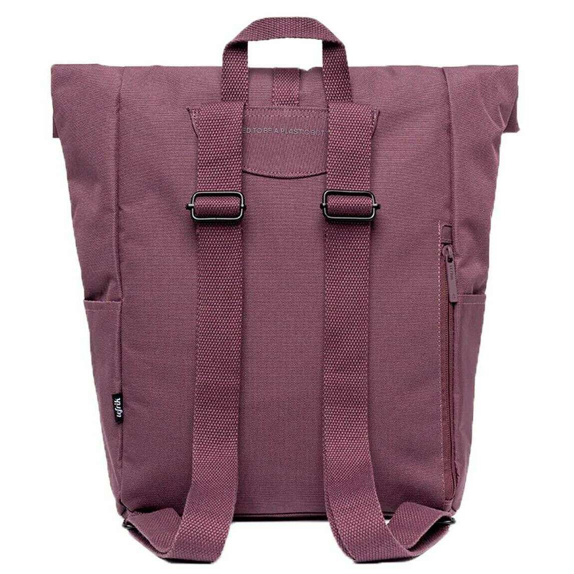 This unisex roll mini backpack has been made from 100% vegan oxford rpet fabric, featured in a purple colour and is from the brand Lefrik. It measures 35cm(height) x 23cm(width) x 12cm(depth). All the bags come complete with lefrik packaging. The Lefrik Roll Mini Backpack - Maroon Purple is designed for versatility and convenience. With a padded compartment for laptops or electronic devices up to 13.6 inches, this roll-top closure backpack also features a zipped inside pocket and mesh organizers for small objects. The back security pocket and external side pockets offer extra space. Lightweight with adjustable cotton handles, this mini roll-top backpack is suitable for various activities, from daily commutes to outdoor adventures.