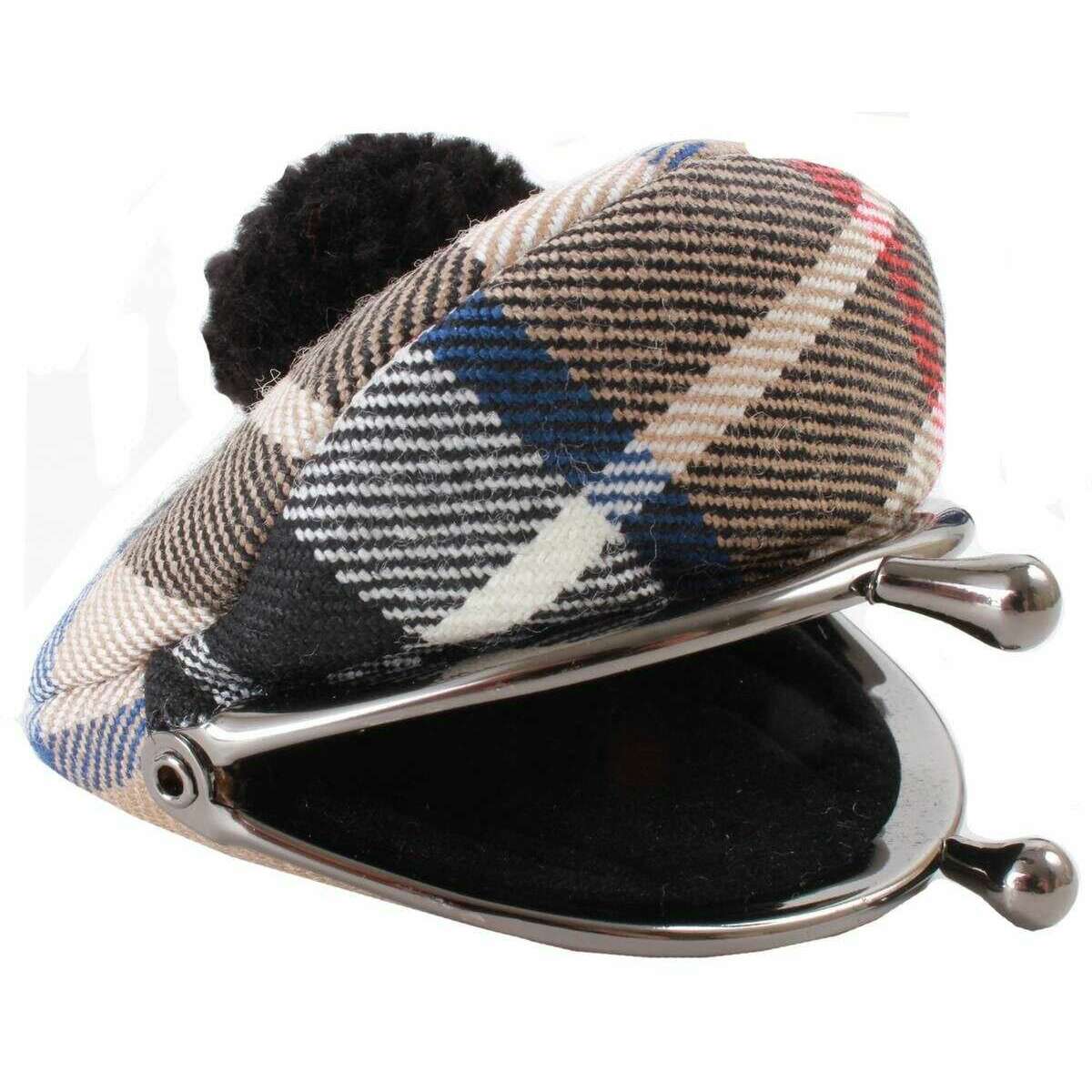 Locharron of Scotland Reiver Thomson Modern Tam Coin Purse - Beige/Black/Blue