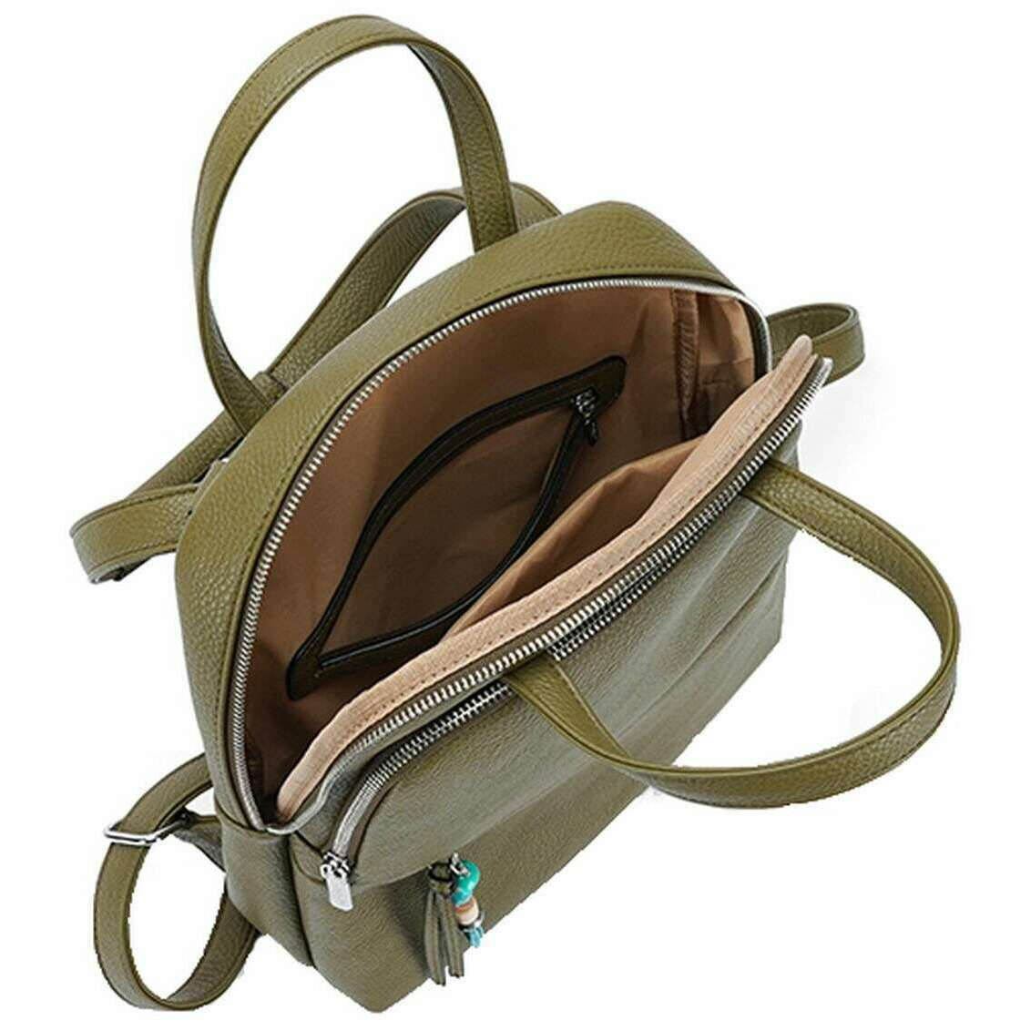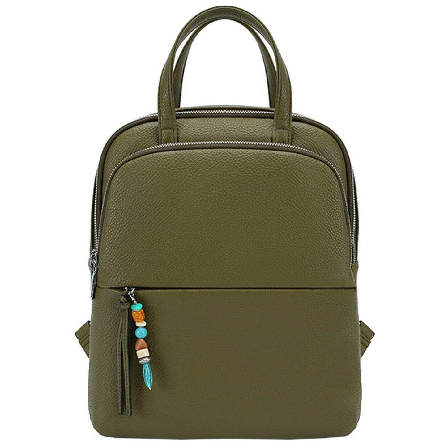 Designer Long and Son has brought you this women's 100% polyurethane bag using green tones. It measures 34cm(height) x 29cm(width) x 10cm(depth). All the bags come complete with long & son packaging. The Long and Son Backpack - Green is a classic with a chic and girly twist featuring a sleek design with an added charm on the zip. Having adjustable back straps allows for a personalised fit for hands free ease and two carry handles for convenience. The exterior pockets, interior pockets and large main compartment allow for optimal storage and organisation when out and about. Great for travels, taking to work or having as an everyday bag this will become a well-used accessory.