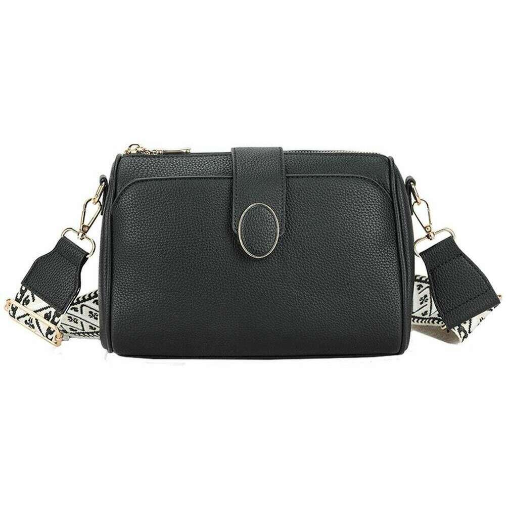 Perfect for women is this Long and Son black double closure crossbody bag, it is also made from 100% polyurethane. It measures 17cm(height) x 25cm(width) x 11cm(depth). All the bags come complete with long & son packaging. The Long and Son Double Closure Crossbody Bag - Black trendy and girly is a must-have to add to your collection with the gorgeous and practical features. The detachable thick detailed body strap can be adjusted to your liking depending on the outfit and the look you are going for perfect for all occasions. The large main compartment and interior pockets are great for optimal storage and organisation to hold everything and more that you need. The double closure, magnetic and zipper, ensures great security for your belongings.