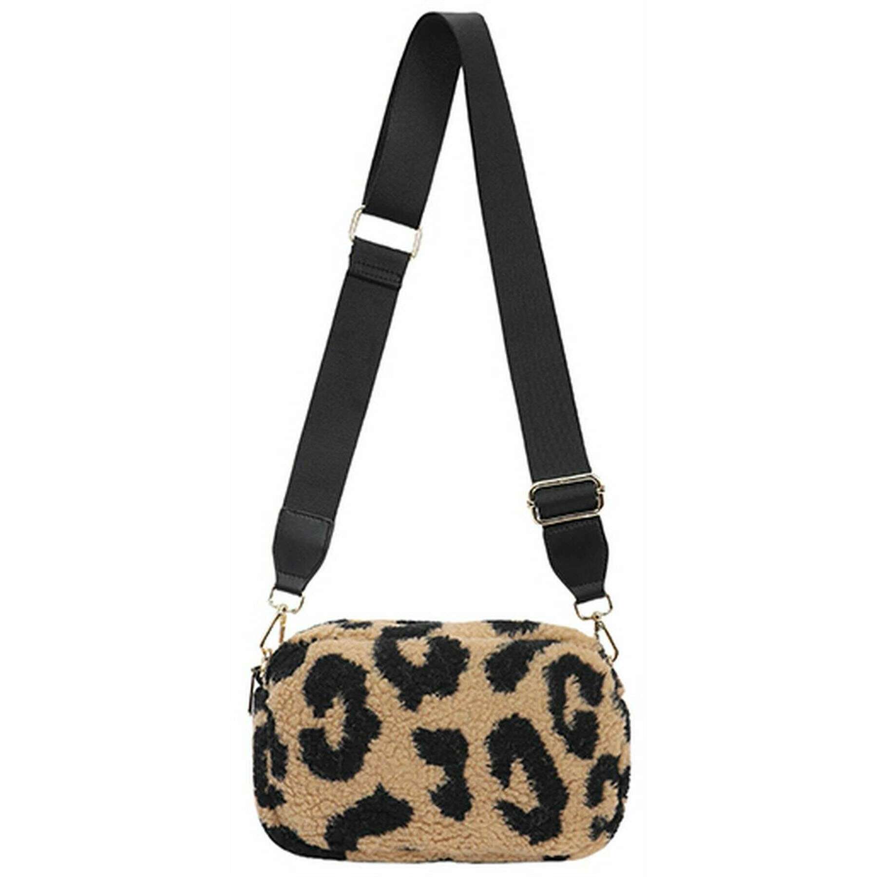 Long and Son Fluffy Crossbody Bag - Leopard Khaki Beige