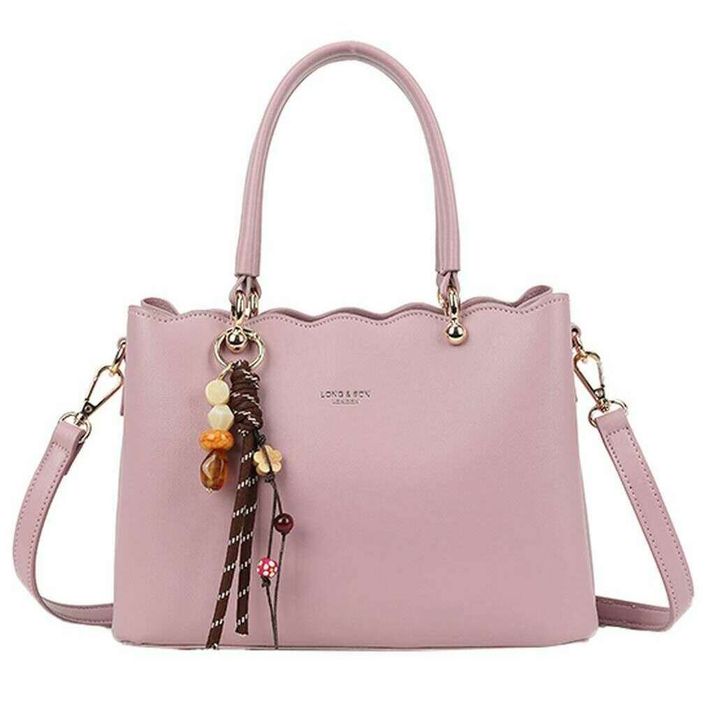 This well made women's scalloped edge crossbody bag from Long and Son comes in a light purple colour and is manufactured from 100% polyurethane. It measures 18cm(height) x 24.5cm(width) x 11cm(depth). All the bags come complete with long & son packaging. The Long and Son Scalloped Edge Crossbody Bag - Light Purple features a large interior with pockets, extra compartments either side of the zipper held together with magnetic closures for extra storage and feet studs for protection when placing down. This bag doubles up as cross body and a handbag with the two carry handles and detachable adjustable crossbody strap. Great for an everyday bag due to the versatility and optimal storage. Complete with the scalloped detailing for a girly touch.