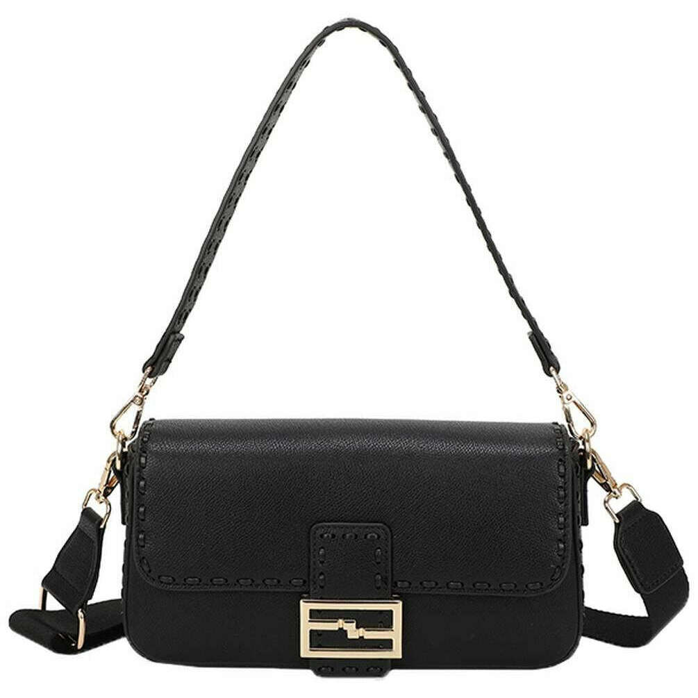 Long and Son Stitch Crossbody Shoulder Bag - Black