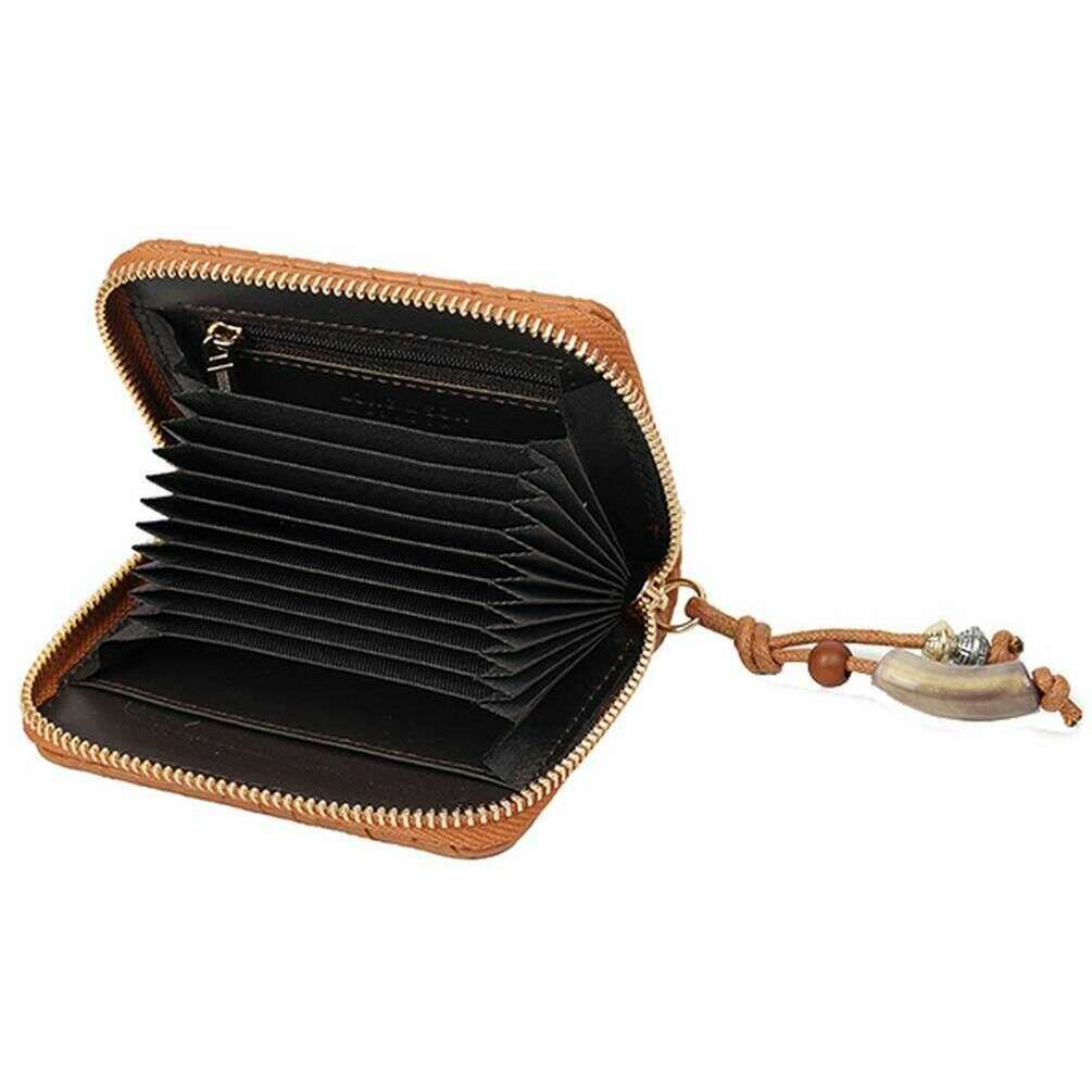 • Zipper Closure , RFID Blocking Technology , Charm Detail , 12 Sections , Card Holder , Zipper Pocket