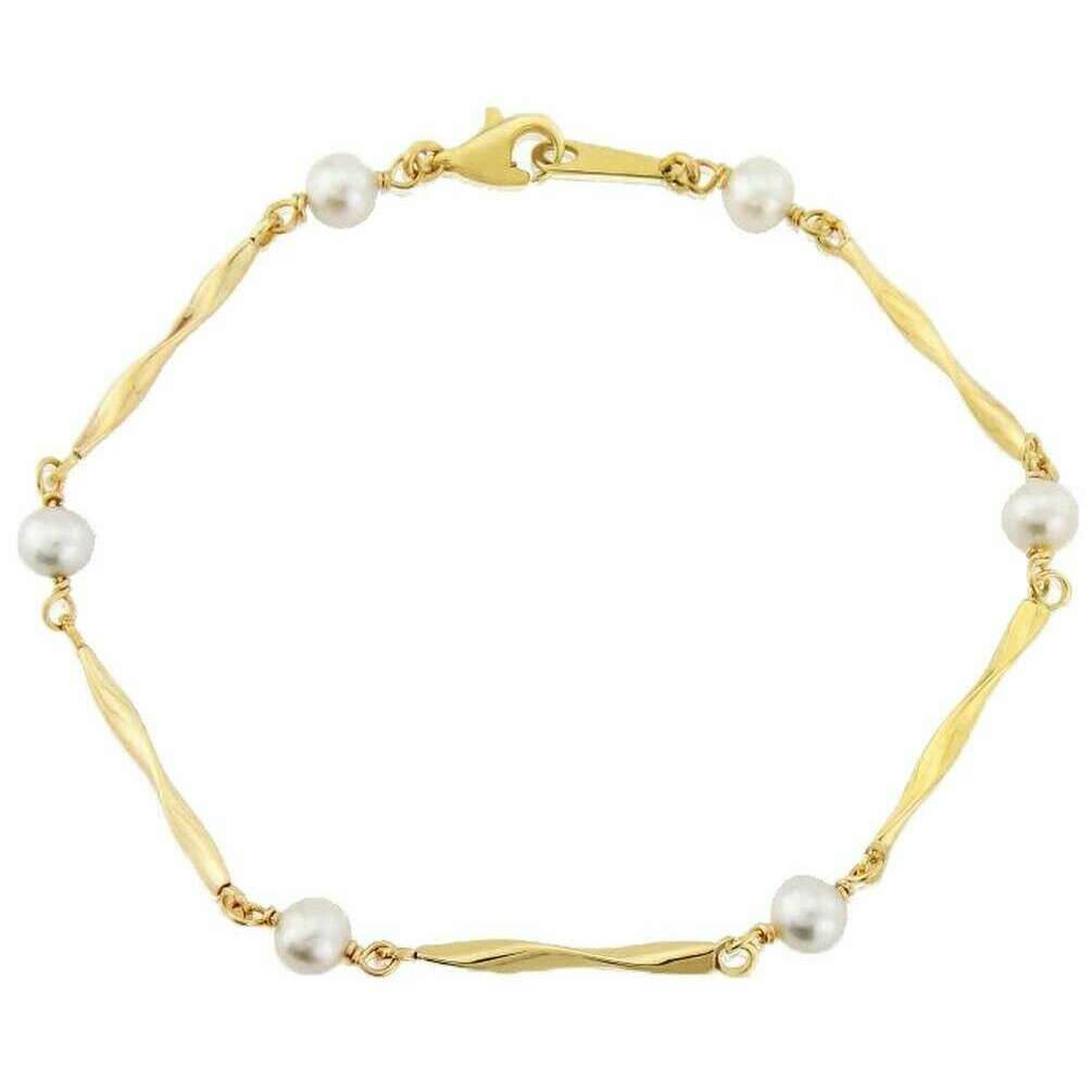 Mark Milton Cultured Pearl Link Bracelet - Yellow Gold/White