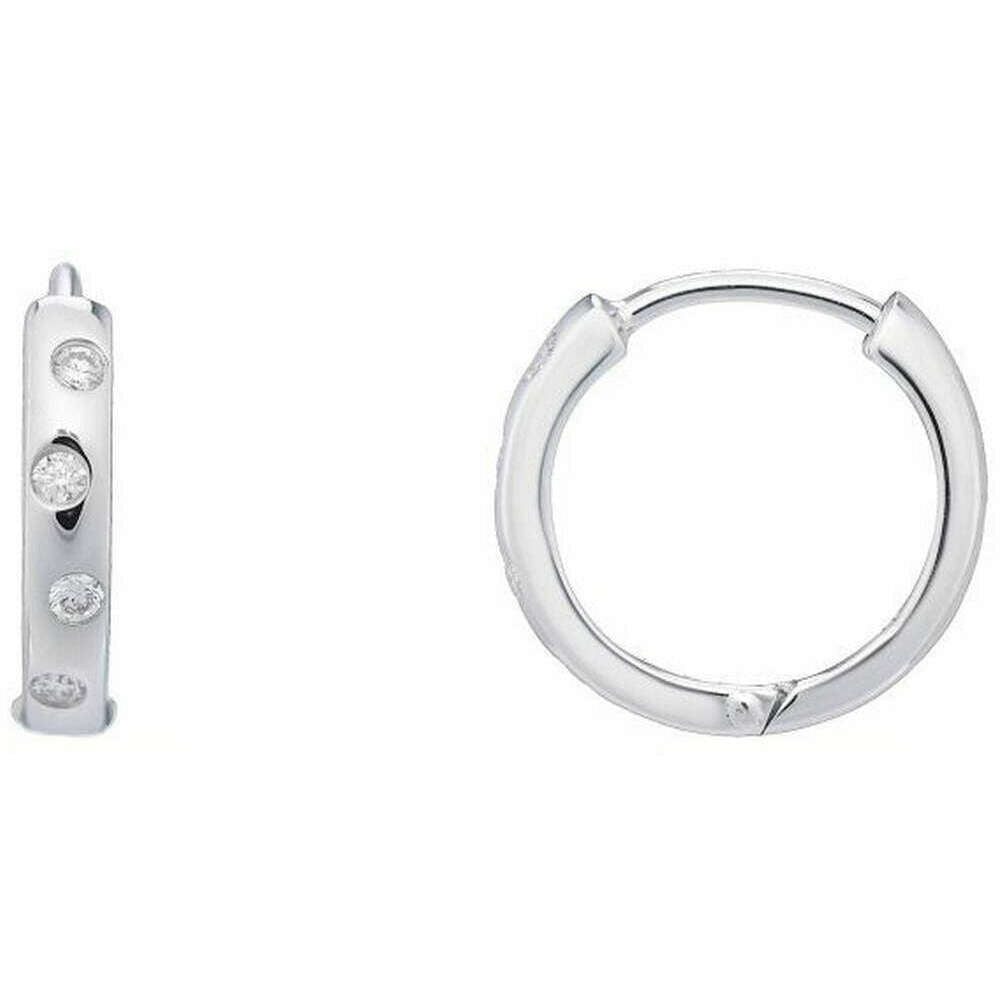 Manufactured from 9ct gold are these white gold women's diamond hoop earrings by the designer Mark Milton. It measures 1.2cm(height) x 1.2cm(width) x 0.1cm(depth). All the earrings come complete with mark milton packaging. The Mark Milton Diamond Hoop Earrings - White Gold are a must-have to add to your earring rotation with its classic diamond hoop design. Perfect for matching with your style whatever the occasion. These make for the perfect gift for yourself or someone else!