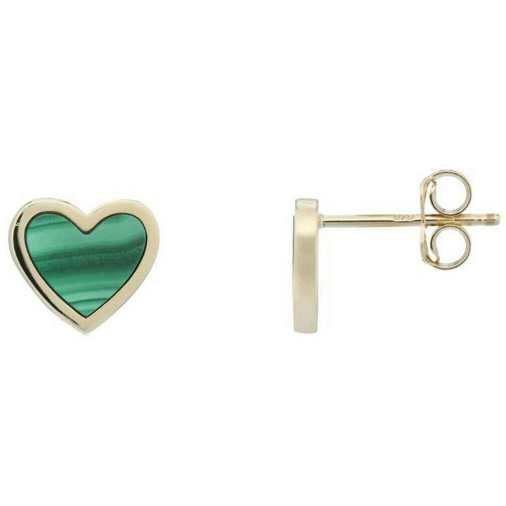 Designer Mark Milton have brought you these women's 9ct gold earrings using yellow gold/green tones. It measures 0.9cm(height) x 1cm(width) x 0.2cm(depth). All the earrings come complete with mark milton packaging. The Mark Milton Malachite Heart Earrings - Yellow Gold/Green are a beautiful pair of gold earrings that feature a malachite stone heart design. This pair of elegant earrings are great for gifting to those you love, or a perfect staple to have in your wardrobe.