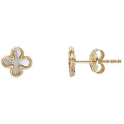Mark Milton Mother of Pearl Clover Earrings - Yellow Gold/White
