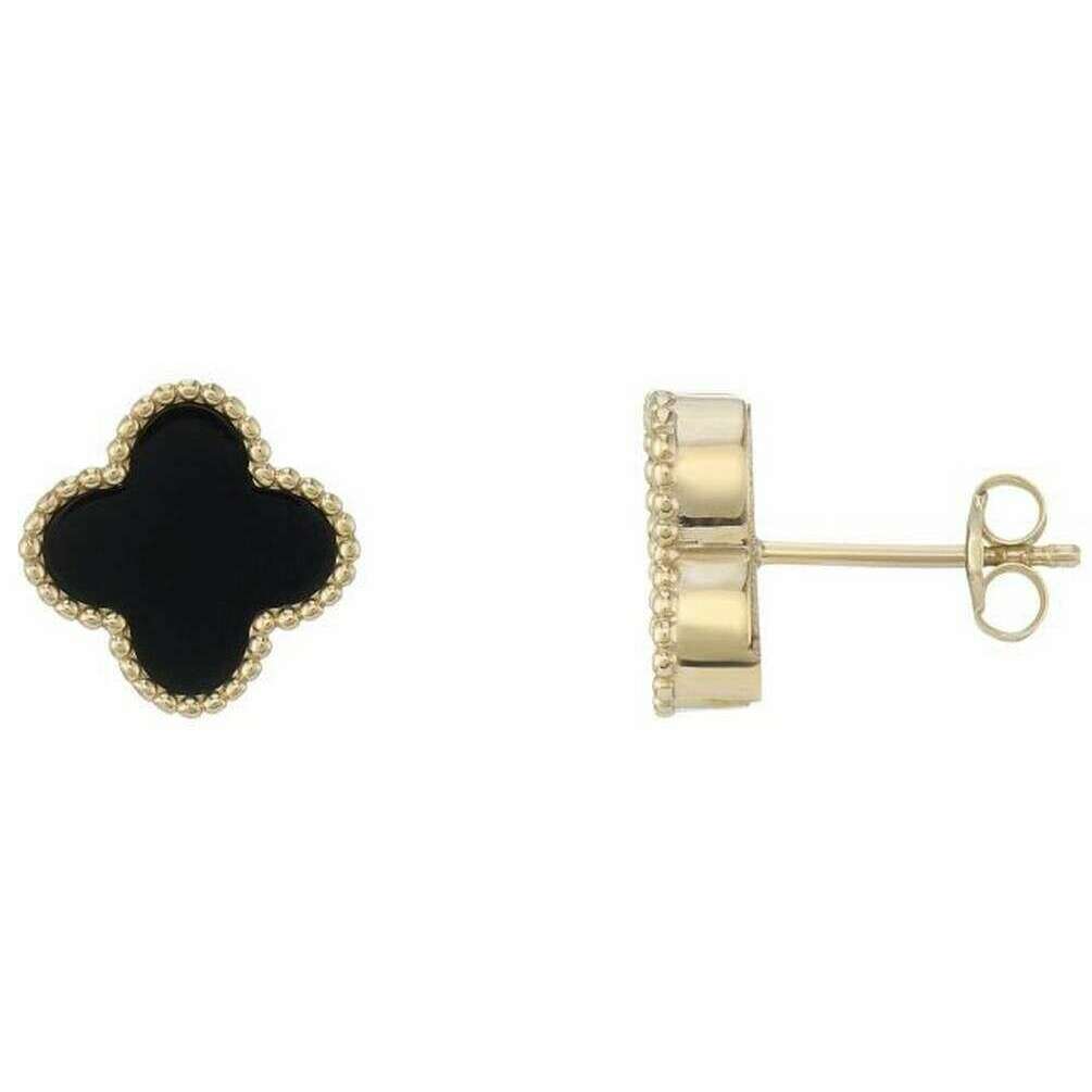 Mark Milton Onyx Flower Earrings - Yellow Gold/Black