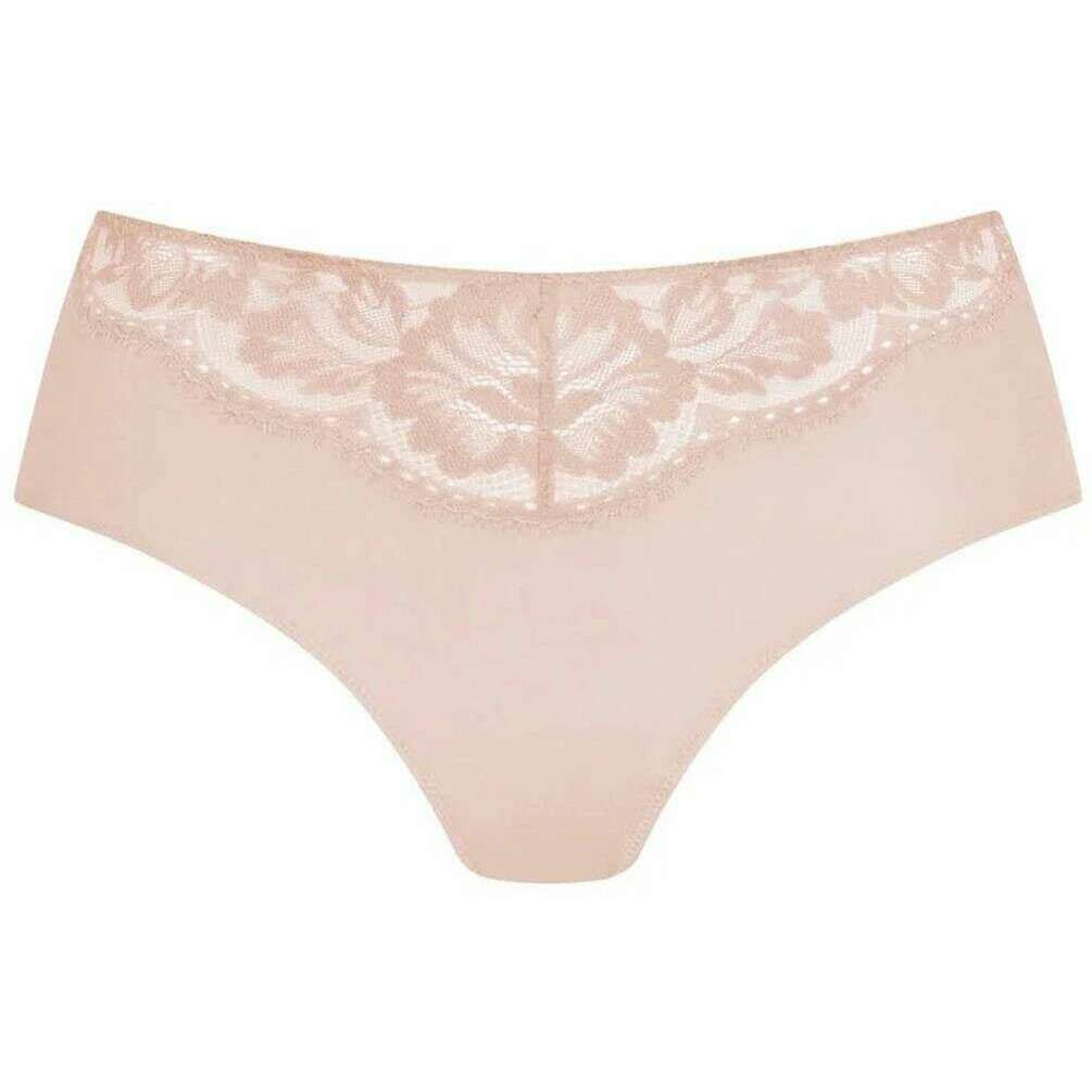 This amazing american pants for women is fashioned by the brand Mey in a beige colour and is made from 78% polyamide and 22% elastane. Also the blossom beige underwear is designed in a plain pattern, It is recommended to machine wash at 30 degrees to keep this underwear in good condition. All the underwear comes complete with mey packaging. The Mey Amazing American Pants - Blossom Beige are a must-have if you are looking for a basic with a gorgeous touch for a feminine feel. This pair has a low rise, a cotton insert on the gusset, seamless legs and a narrow waistband which all contribute to giving optimal comfort for an everyday wear. The lace front gives an elegant flair.