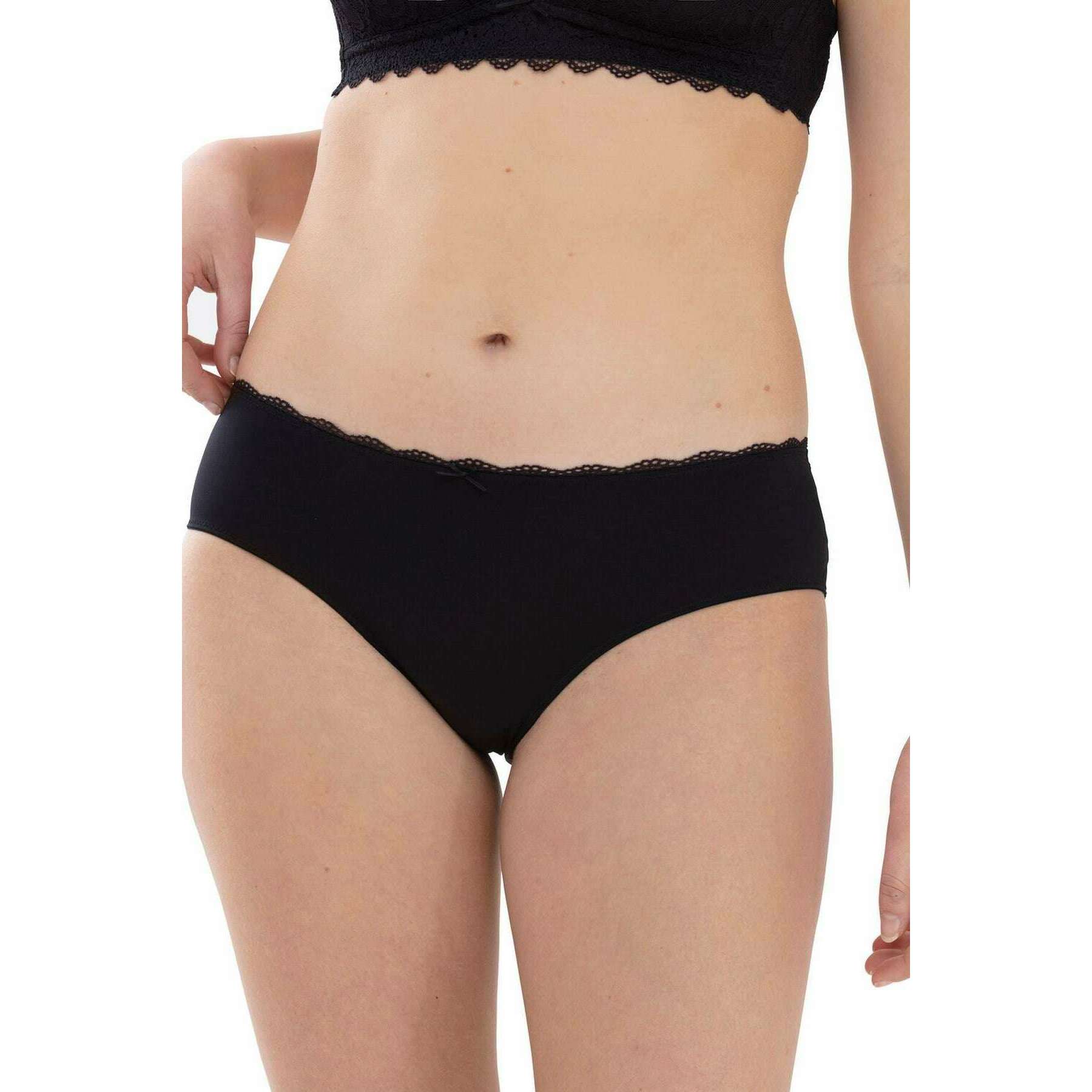 Brought to you by the brand Mey, this black women's amorous hipster briefs is made from 87% polyamide and 13% elastane. Also the black underwear is designed in a plain pattern, It is recommended to machine wash at 30 degrees to keep this underwear in good condition. All the underwear comes complete with mey packaging. The Mey Amorous Hipster Briefs - Black are a must-have if you are looking for a basic with a gorgeous touch for a feminine feel. This pair has a deep mid-rise, a cotton insert on the gusset, seamless legs and a flat waistband which all contribute to giving optimal comfort for an everyday wear. The lace back gives an elegant sexy flair.
