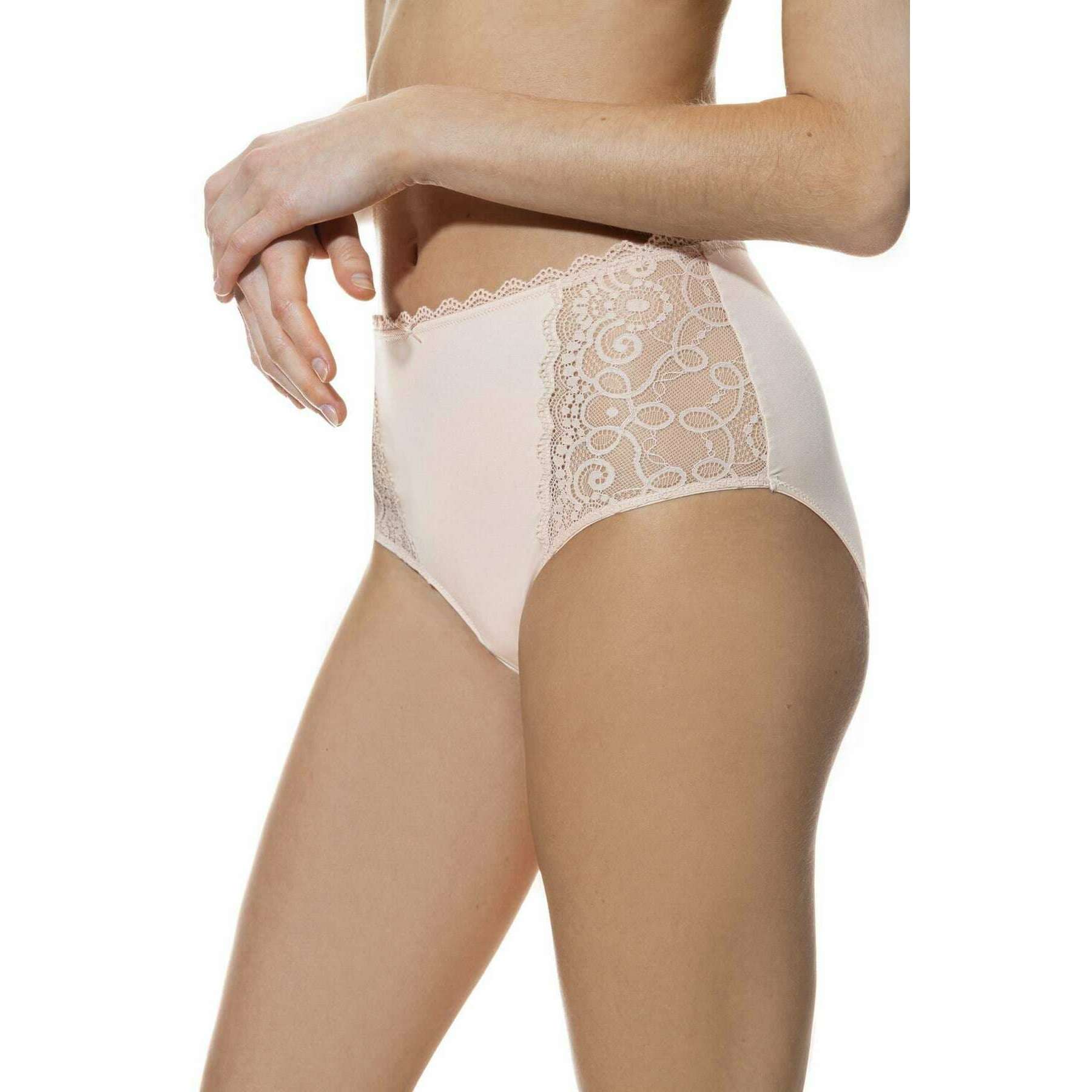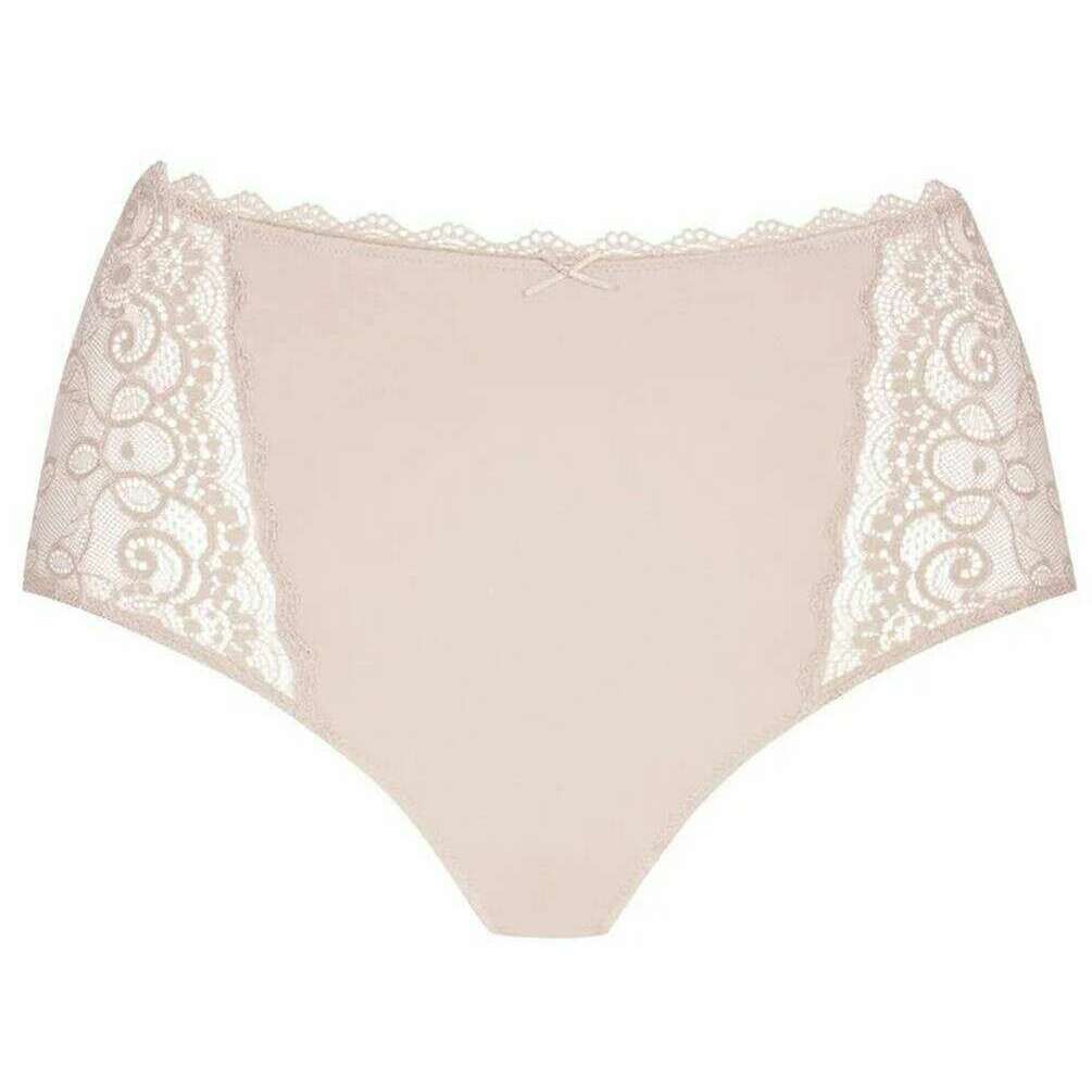 Manufactured from 87% polyamide and 13% elastane is this bailey beige women's amorous waist pants by the designer Mey. Also the bailey beige underwear is designed in a plain pattern, It is recommended to machine wash at 30 degrees to keep this underwear in good condition. All the underwear comes complete with mey packaging. The Mey Amorous Waist Pants - Bailey Beige are a must-have if you are looking for a basic with a gorgeous touch for a feminine feel. This pair has a high waisted fit, a cotton insert on the gusset, seamless legs and a flat waistband which all contribute to giving optimal comfort for an everyday wear. The lace sides gives an elegant sexy flair.