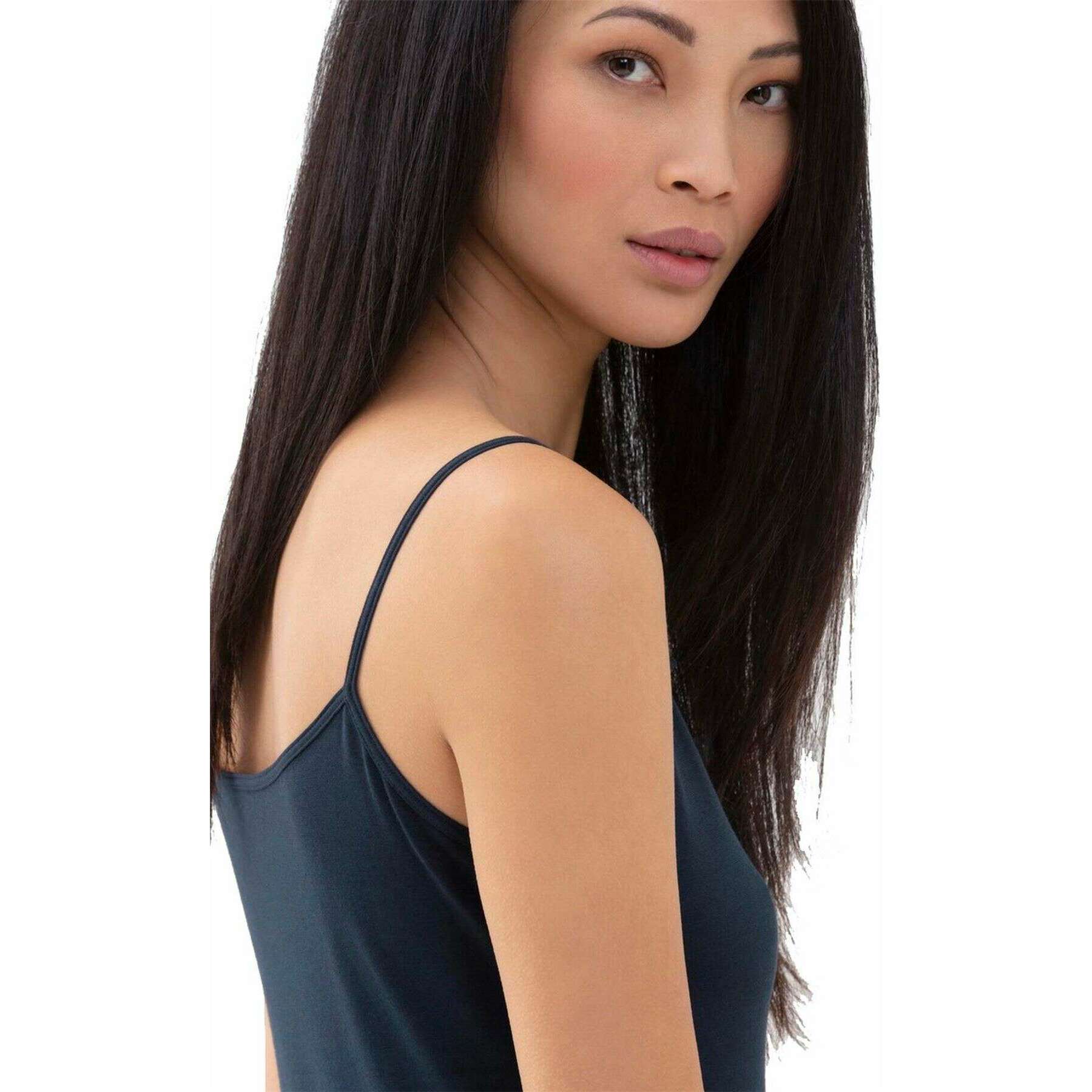 Designer Mey has brought you this women's 94% cotton and 6% elastane vest using night blue tones. Also the night blue vest is designed in a plain pattern, It is recommended to machine wash on a 60 degree normal cycle, do not bleach to keep this vest in good condition. All the vests come complete in mey packaging. The Mey Cotton Pure Spaghetti Vest Top - Night Blue is the perfect choice for wearing with pjs, loungewear or under a jumper for an extra layer. The slim fit offers a cosy layer, and the spaghetti straps and low neckline make it a great option if wearing with something more delicate. It features natural comfort thanks to its high elasticity, making it like a second skin.
