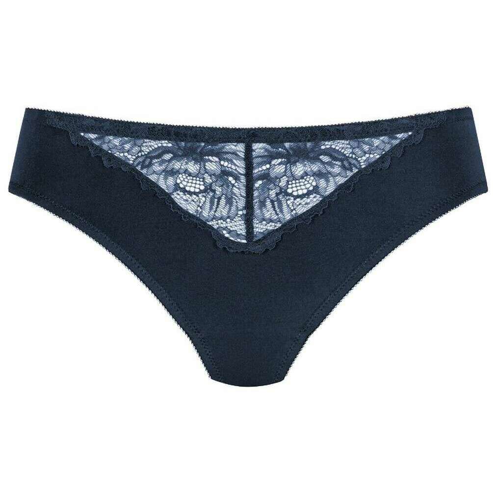 This well made women's luxurious mini briefs from Mey comes in a night blue colour and is manufactured from 87% polyamide and 13% elastane. Also the night blue underwear is designed in a plain pattern, It is recommended to machine wash at 30 degrees to keep this underwear in good condition. All the underwear comes complete with mey packaging. The Mey Luxurious Mini Briefs - Night Blue are a must-have if you are looking for a basic with a gorgeous touch for a feminine feel. This pair has a low-rise fit, a cotton insert on the gusset, seamless legs and a flat waistband which all contribute to giving optimal comfort for an everyday wear. The lace front gives an elegant sexy flair.