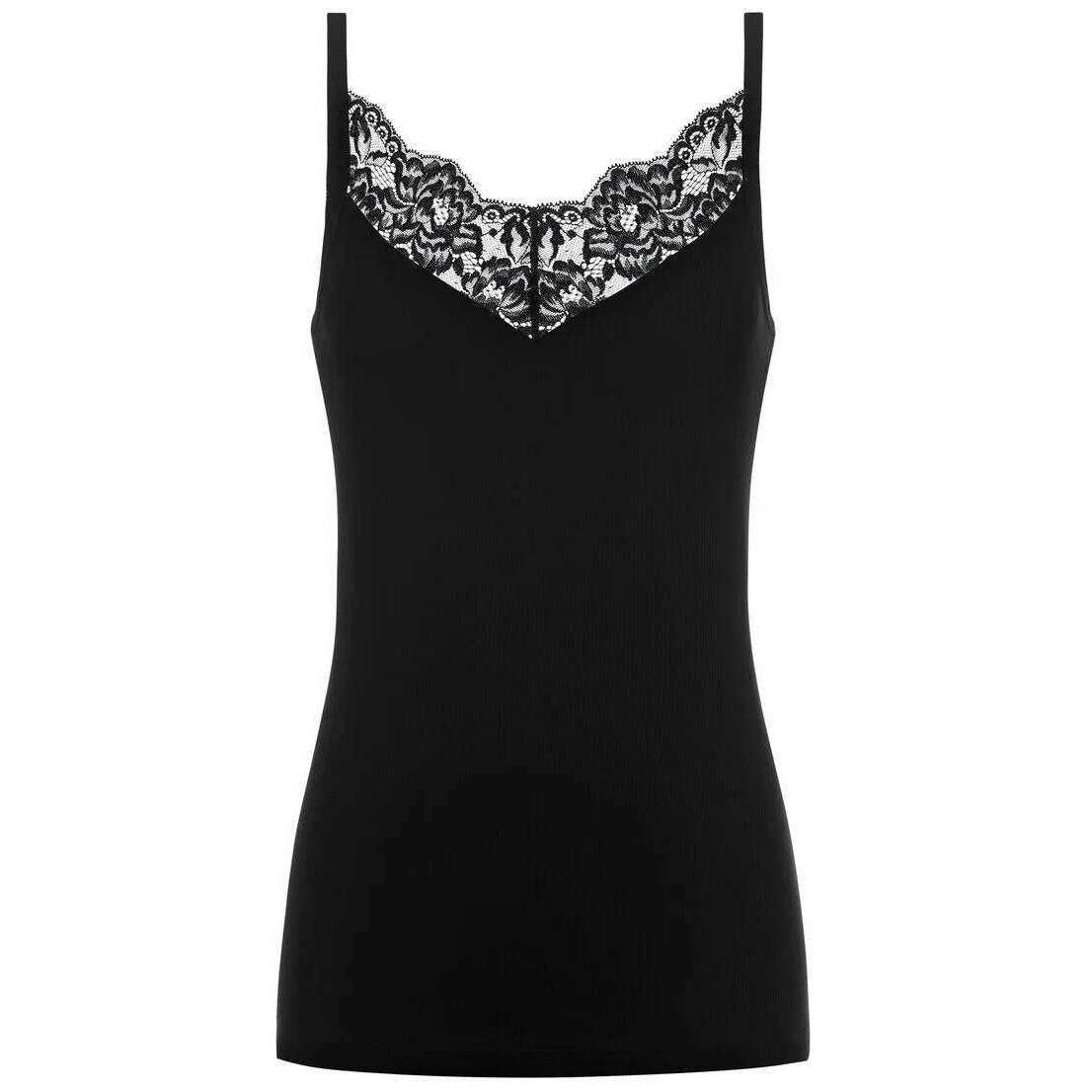 Mey Organic Cotton Lace Spaghetti Top - Black