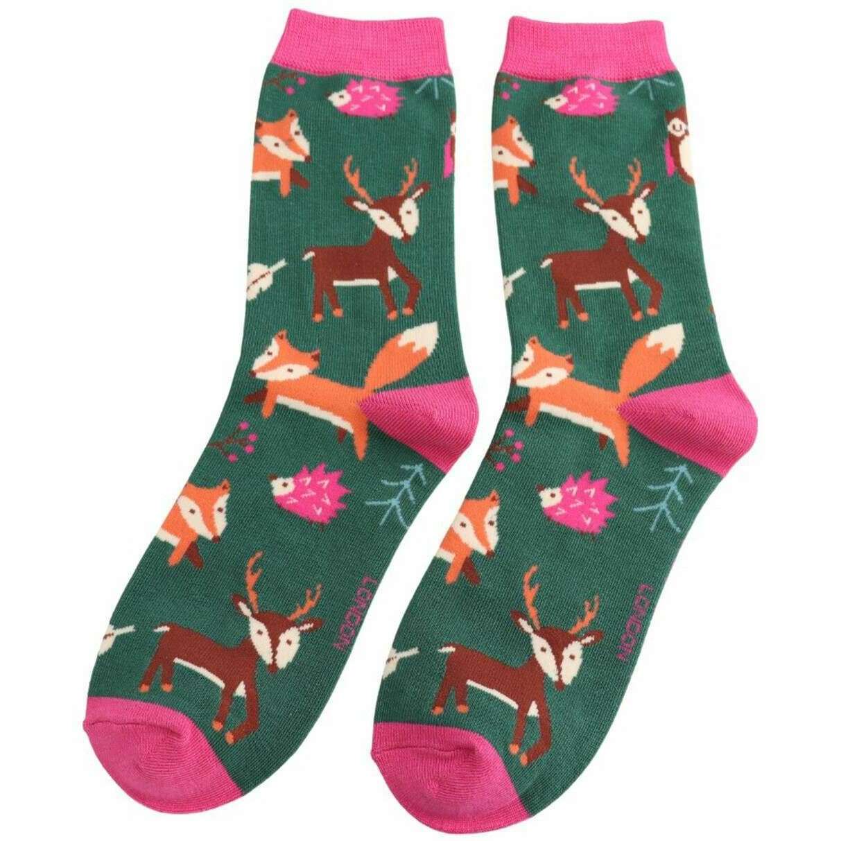 Miss Sparrow London Woodland Animals Bamboo Socks - Dark Green