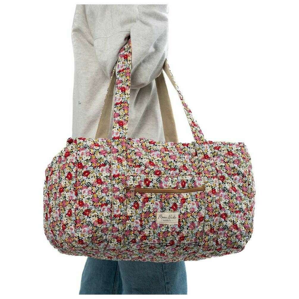 Introducing this women's autumn large duffel bag by Moon Nude, it is manufactured from 100% cotton in a red/white/pink colour. It measures 30cm(height) x 50cm(width) x 28cm(depth). It is recommended to wash by hand in cold water with a mild detergent, or maching wash inside out on a delicate cycle. to keep this bag in good condition. All the bags come complete with moon nude packaging. The Moon Nude Autumn Large Duffel Bag - Red/White/Pink features a beautiful handmade quilted design. This bag features an exterior zip pocket, a spacious interior and two large handles, perfect for weekend getaways or carrying lots of belongings.