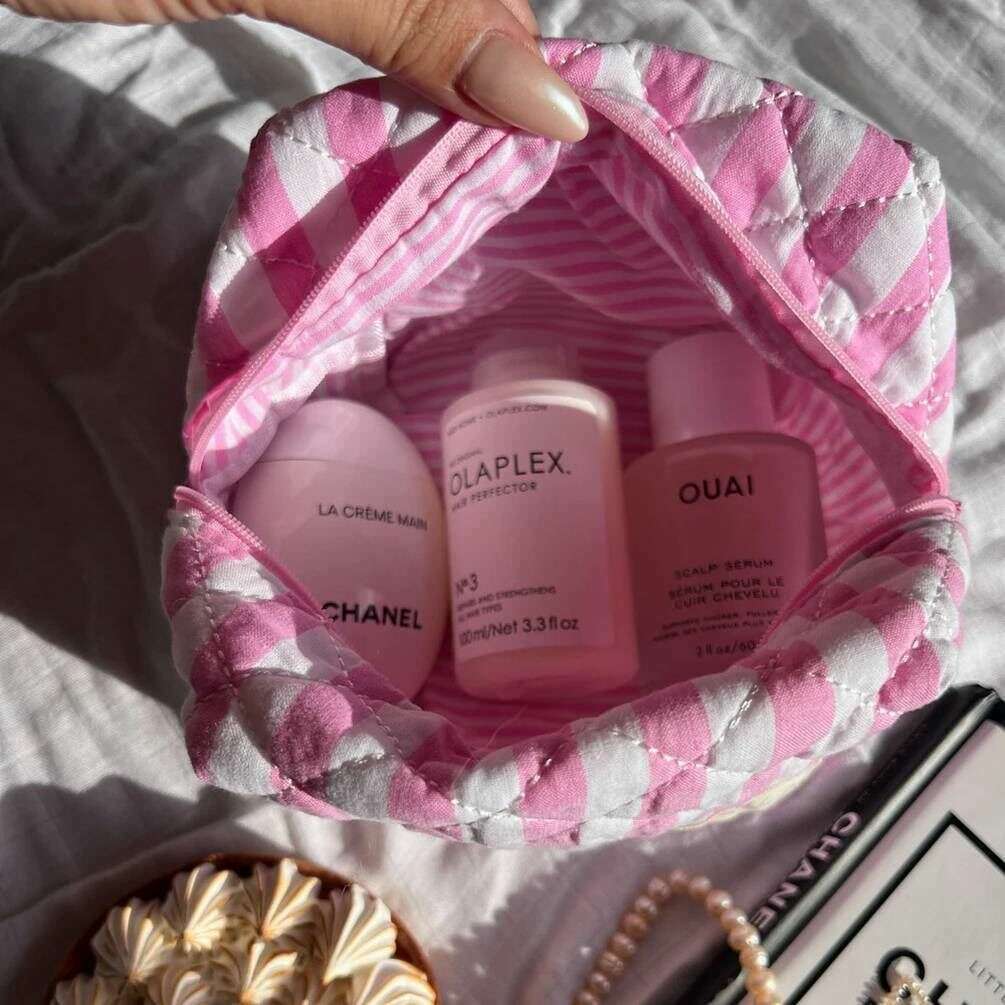 This barbie mini makeup bag for women is fashioned by the brand Moon Nude in a pink colour and is made from 100% cotton. It measures 13cm(height) x 15cm(width) x 11cm(depth). It is recommended to wash by hand in cold water with a mild detergent, or maching wash inside out on a delicate cycle. to keep this bag in good condition. All the bags come complete with moon nude packaging. The Moon Nude Barbie Mini Makeup Bag - Pink/White is an absolute necessity for your room or everyday bag. This makeup bag is guaranteed to keep all your most used products together and safe, whilst also being stylish and chic with its handmade quilted design.