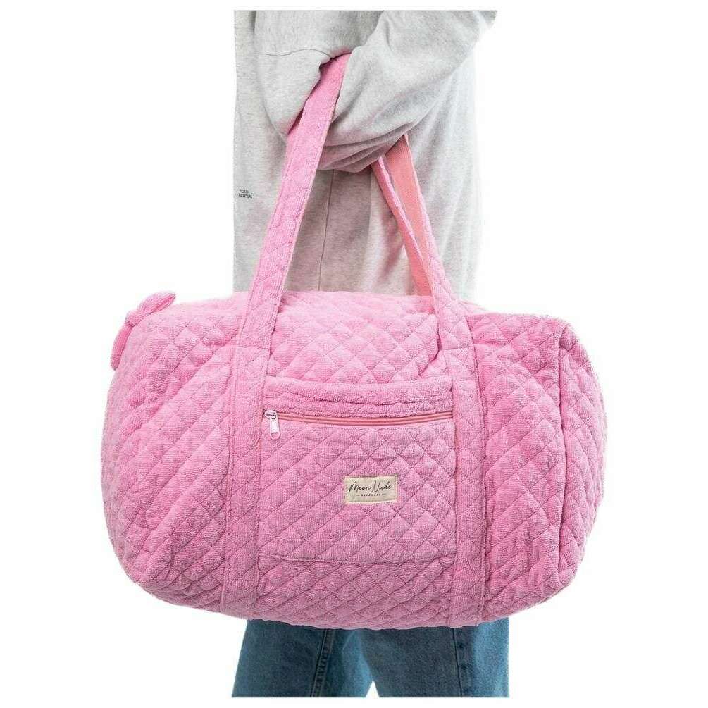 Brought to you by the brand Moon Nude, this pink women's candy large duffel bag is made from 100% cotton. It measures 30cm(height) x 50cm(width) x 28cm(depth). It is recommended to wash by hand in cold water with a mild detergent, or maching wash inside out on a delicate cycle. to keep this bag in good condition. All the bags come complete with moon nude packaging. The Moon Nude Candy Large Duffel Bag - Pink features a beautiful handmade quilted design. This bag features an exterior zip pocket, a spacious interior and two large handles, perfect for weekend getaways or carrying lots of belongings.
