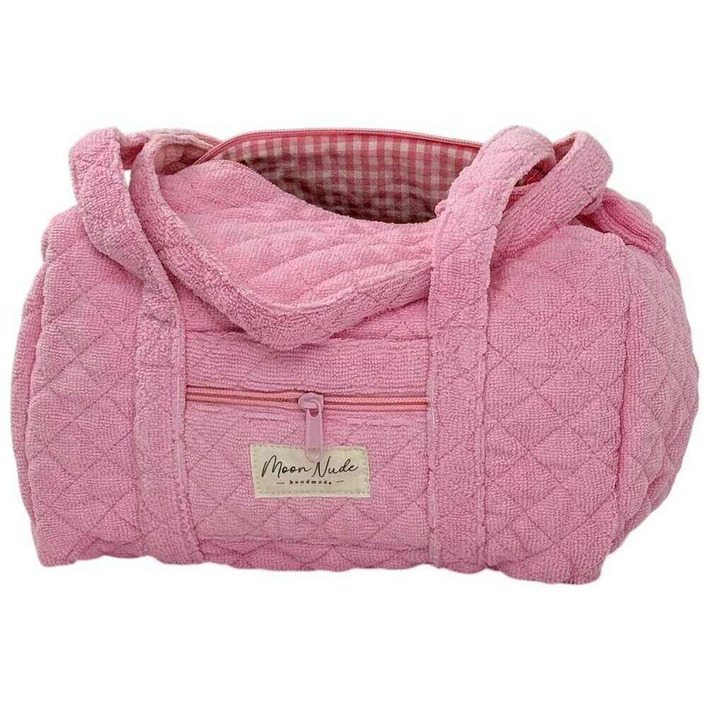 Perfect for women is this Moon Nude pink candy mini duffel bag, it is also made from 100% cotton. It measures 18cm(height) x 31cm(width) x 18cm(depth). It is recommended to wash by hand in cold water with a mild detergent, or maching wash inside out on a delicate cycle. to keep this bag in good condition. All the bags come complete with moon nude packaging. The Moon Nude Candy Mini Duffel Bag - Pink features a beautiful handmade quilted design. This bag features an exterior zip pocket, a spacious interior and two large handles, perfect for a casual going out bag or as a gift.