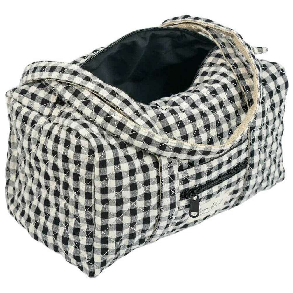 This well made women's classic mini duffel bag from Moon Nude comes in a black/white colour and is manufactured from 100% cotton. It measures 18cm(height) x 31cm(width) x 18cm(depth). It is recommended to wash by hand in cold water with a mild detergent, or maching wash inside out on a delicate cycle. to keep this bag in good condition. All the bags come complete with moon nude packaging. The Moon Nude Classic Mini Duffel Bag - Black/White features a beautiful handmade quilted design. This bag features an exterior zip pocket, a spacious interior and two large handles, perfect for a casual going out bag or as a gift.