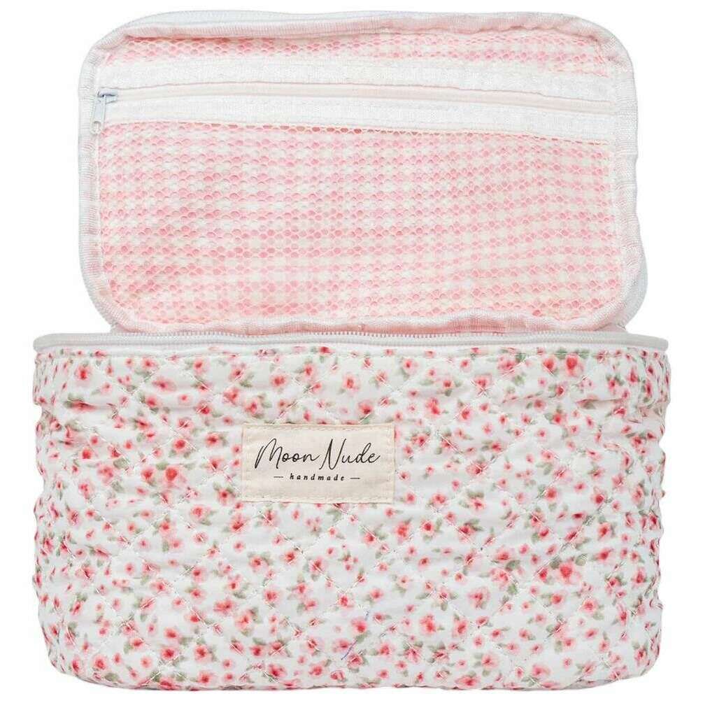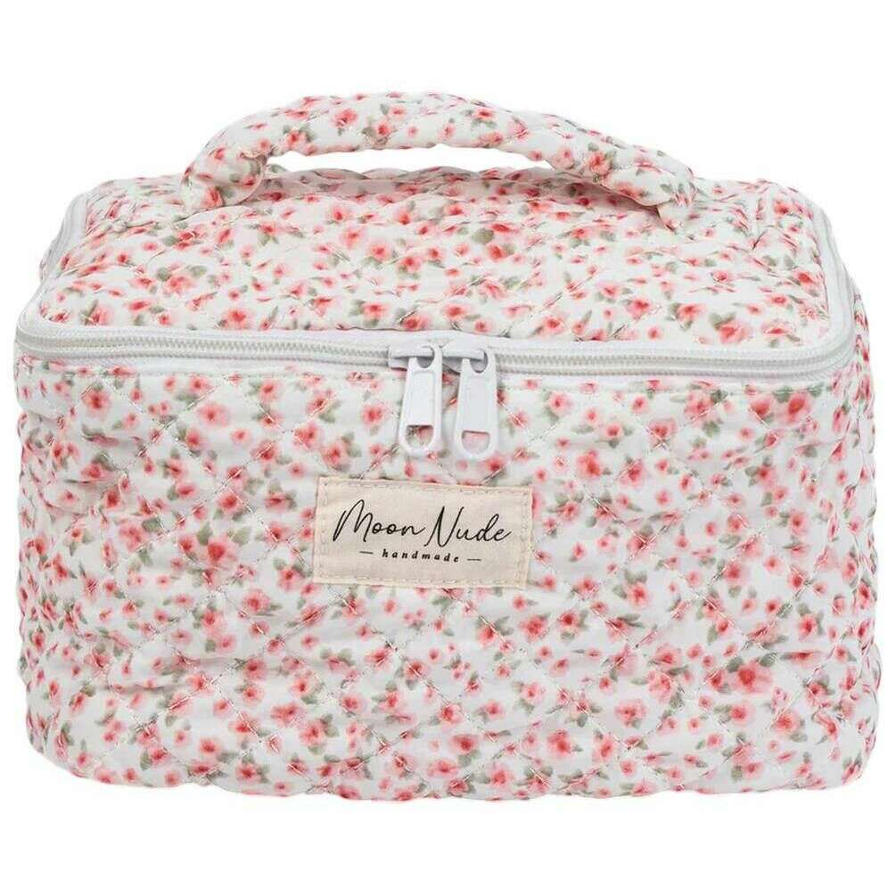 Manufactured from 100% cotton is this white/red/green/pink women's peony vanity bag by the designer Moon Nude. It measures 16cm(height) x 22cm(width) x 14cm(depth). It is recommended to wash by hand in cold water with a mild detergent, or maching wash inside out on a delicate cycle. to keep this bag in good condition. All the bags come complete with moon nude packaging. The Moon Nude Peony Vanity Bag - White/Red/Green/Pink is an absolute necessity for travelling or everyday use. This vanity bag is guaranteed to keep all your makeup or skin care in one place, whilst also being stylish and fashionable with its handmade quilted design.