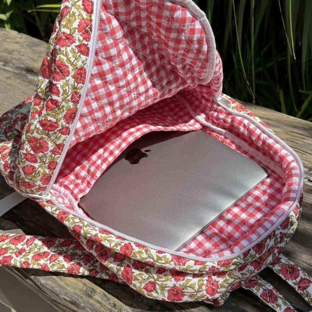 • Zip Front Pocket , Laptop Pocket , Zip Closure , Adjustable Straps , Handmade , Top Carry Handle , Quilted Exterior