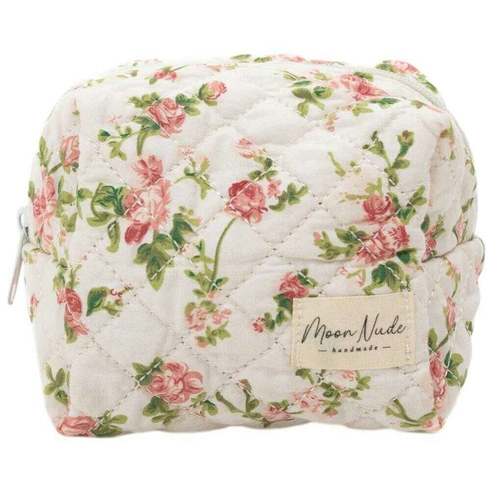Brought to you by the brand Moon Nude, this white/pink/green women's roze mini makeup bag is made from 100% cotton. It measures 13cm(height) x 15cm(width) x 11cm(depth). It is recommended to wash by hand in cold water with a mild detergent, or maching wash inside out on a delicate cycle. to keep this bag in good condition. All the bags come complete with moon nude packaging. The Moon Nude Roze Mini Makeup Bag - White/Pink/Green is an absolute necessity for your room or everyday bag. This makeup bag is guaranteed to keep all your most used products together and safe, whilst also being stylish and chic with its handmade quilted design.