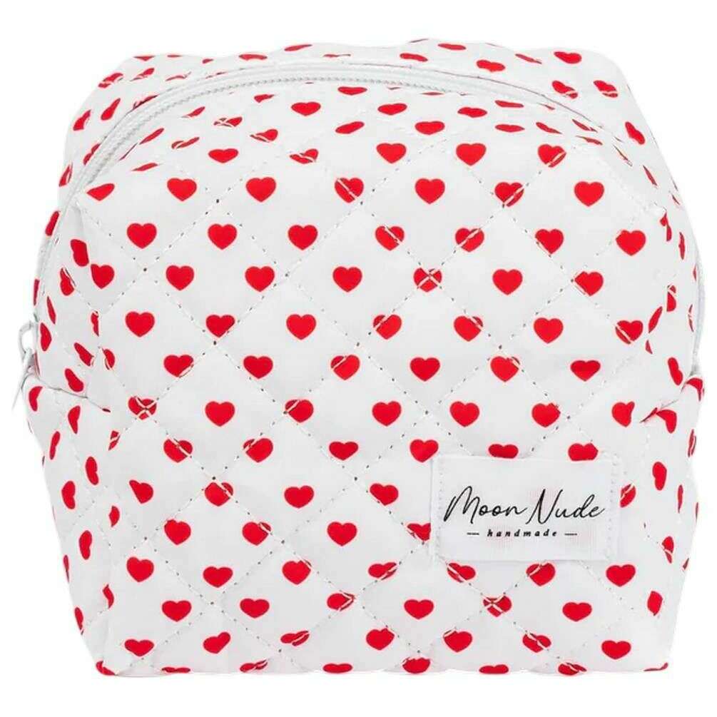 Perfect for women is this Moon Nude white/red valentine mini makeup bag, it is also made from 100% cotton. It measures 13cm(height) x 15cm(width) x 11cm(depth). It is recommended to wash by hand in cold water with a mild detergent, or maching wash inside out on a delicate cycle. to keep this bag in good condition. All the bags come complete with moon nude packaging. The Moon Nude Valentine Mini Makeup Bag - White/Red is an absolute necessity for your room or everyday bag. This makeup bag is guaranteed to keep all your most used products together and safe, whilst also being stylish and chic with its handmade quilted design.