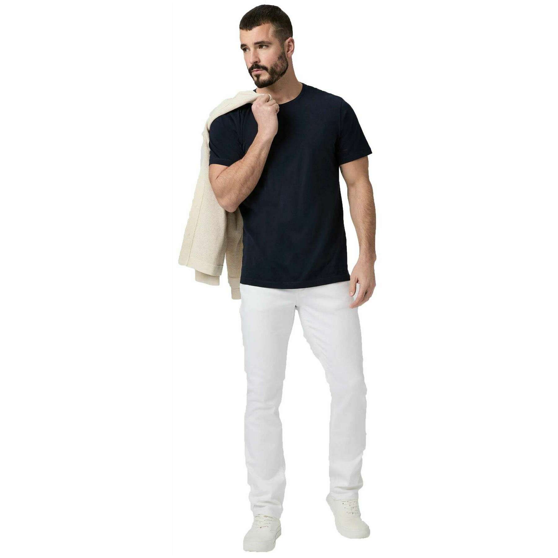 Manufactured from 54% rayon, 26% cotton, 17% polyester and 3% spandex are these icecap white men's federal slim straight jeans by the designer PAIGE. Also the icecap white jeans are designed in a plain pattern, It is recommended to turn garment inside out, use cold water on a gentle cycle and hang dry to keep these jeans in good condition. All the jeans come complete with paige tags. The PAIGE Federal Slim Straight Jeans - Icecap White have been crafted from the famous denim transcend which is very popular and well-loved. This versatile modern slim fit pair that is loosely fitted through the thigh and straight from the knee down can be styled in endless ways and is a must have pair to have in your collection. Featuring a high-stretch material ensures upmost comfort for a perfect everyday wear.