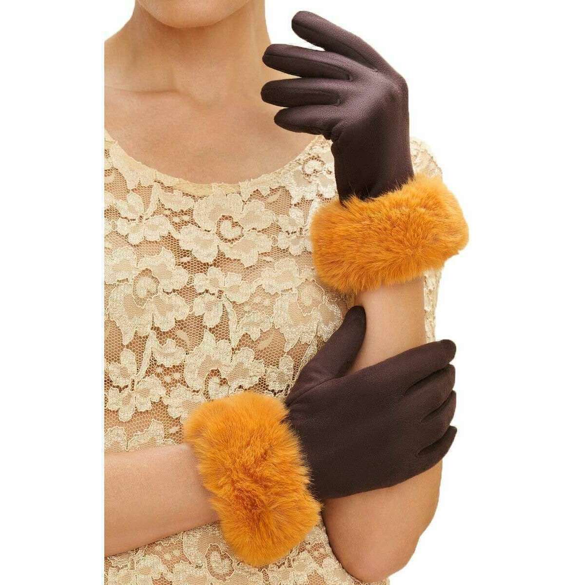Powder Bettina Gloves - Chocolate Brown/Mustard Yellow
