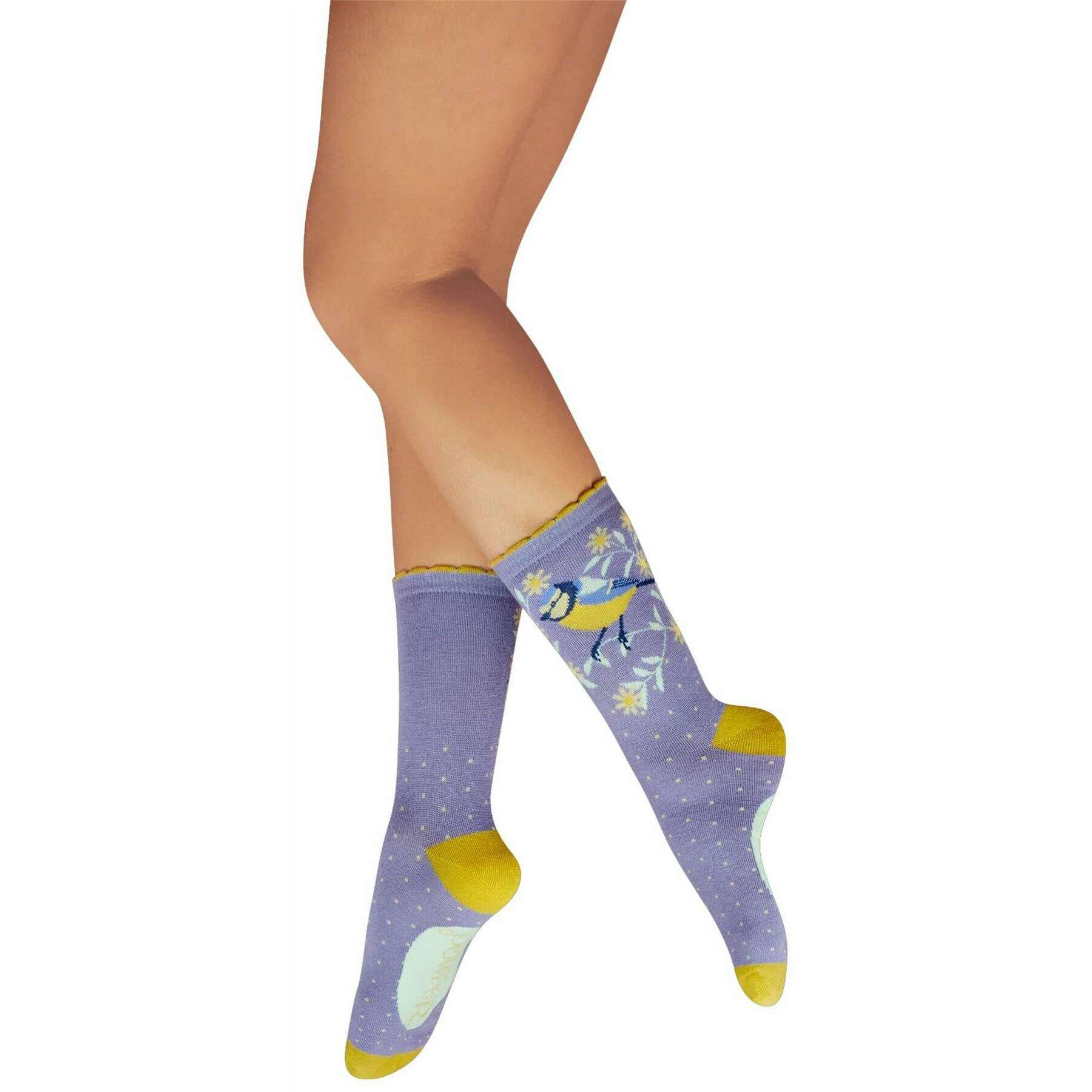 Powder Blooming Blue Tit Ankle Socks - Purple/Yellow/White