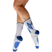 Introducing these women's blue birds ankle socks by Powder, they are manufactured from 65% bamboo, 15% cotton, 10% nylon and 10% elastane in a white/blue colour. Also the white/blue socks are designed in a unique pattern, It is recommended to wash at 30 degrees to keep these socks in good condition. All the socks come complete with powder sock tags. The Powder Blue Birds Ankle Socks - White/Blue feature a fun, playful design that will be a joyful addition to any of your outfits. Made using bamboo these socks are incredibly comfortable and durable. The rich colouring and playful background ensure these socks standout. Perfect as a gift these white and blue socks are ideal for summery outfit.