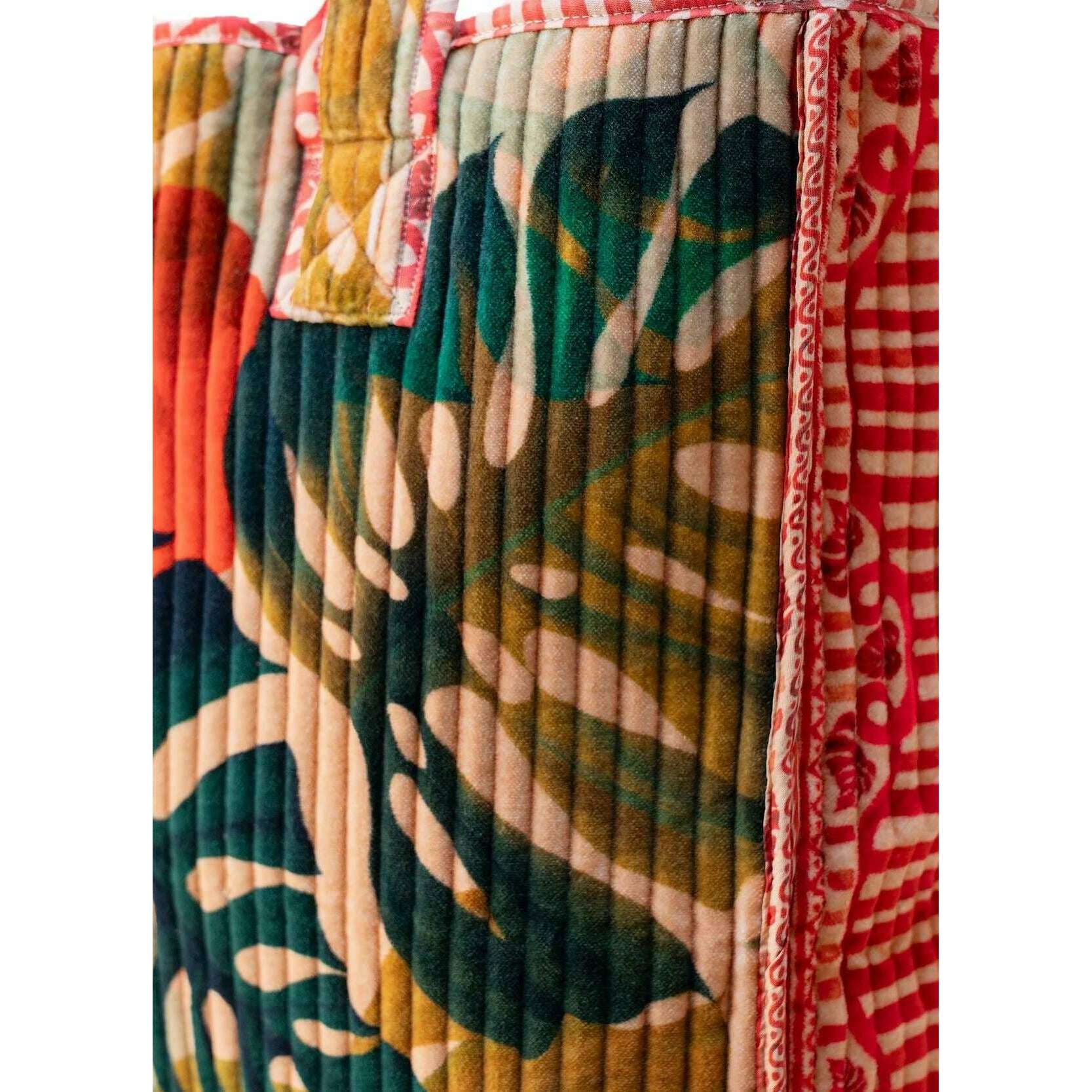 Powder Exotic Leaves Luxe Velvet Quilted Tote - Beige/Red/Green