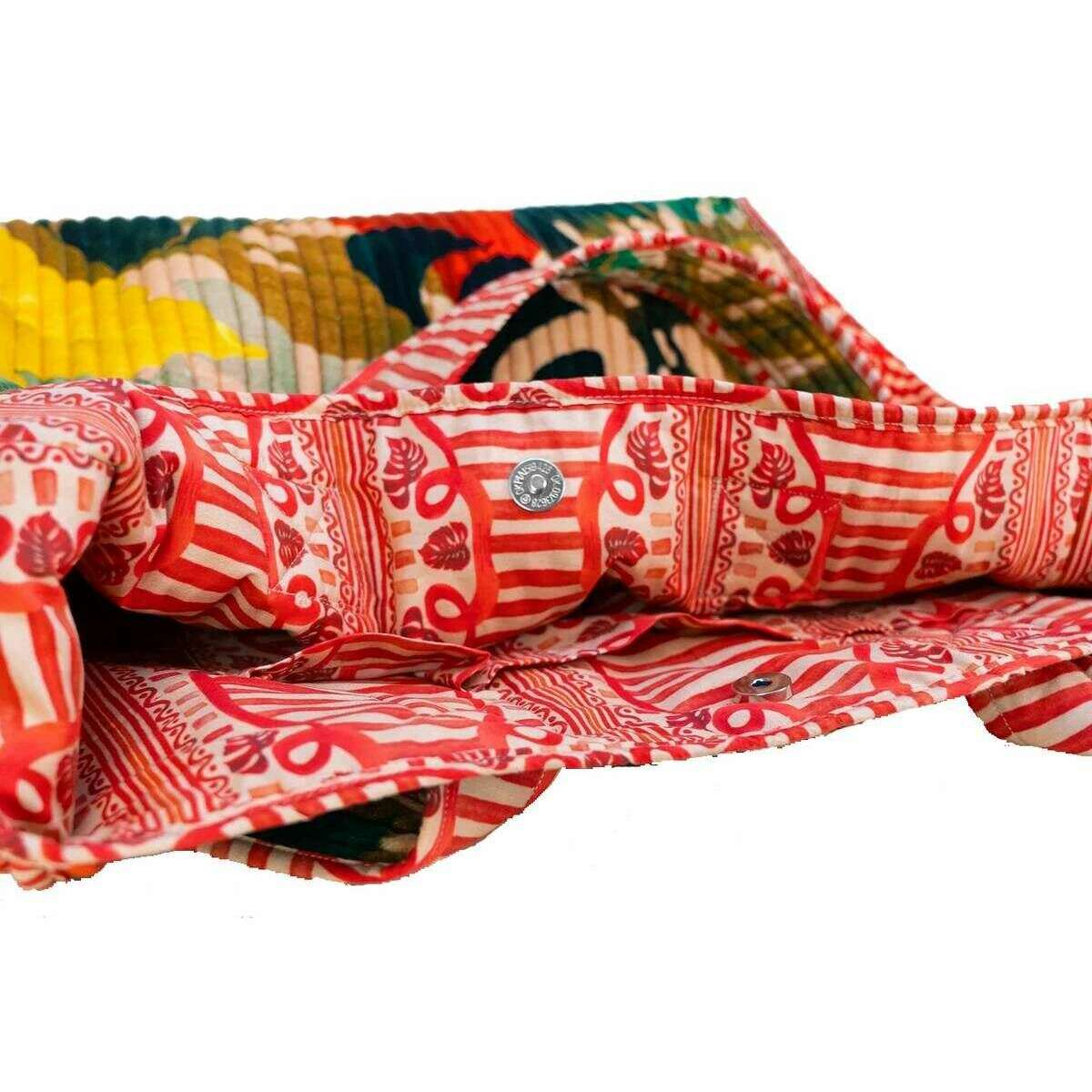 This women's exotic leaves luxe velvet quilted tote by the brand Powder is made from 100% cotton velvet and is showcased in beige. It measures 73cm(height) x 44cm(width) x 13cm(depth). All the bags come complete with powder packaging. The Powder Exotic Leaves Luxe Velvet Quilted Tote - Beige/Red/Green is a practical and diverse bag that can be used for everyday outings, trips to the beach or a picnic in the park. The stunning quilted detail adds timeless flair, and the twin carry handles make it a comfortable carry, whether that be over the shoulder or at your side. This piece offers easy storage with its open compartment in which you can just chuck things in and pull them right out.