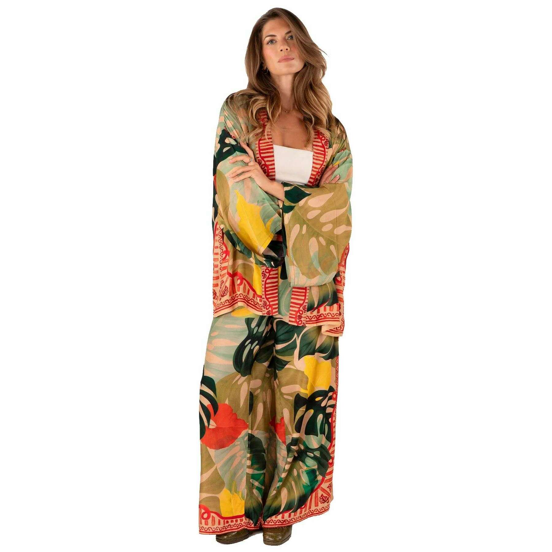 Powder Exotic Leaves Trousers - Green/Beige/Yellow